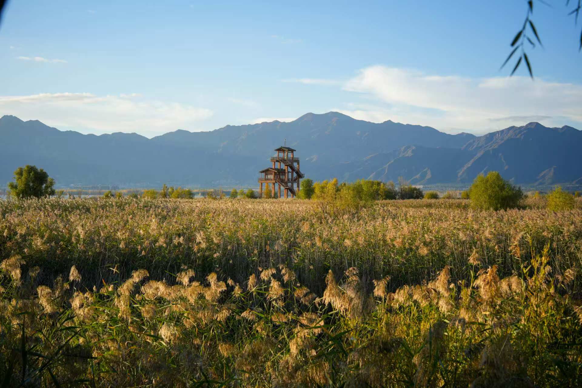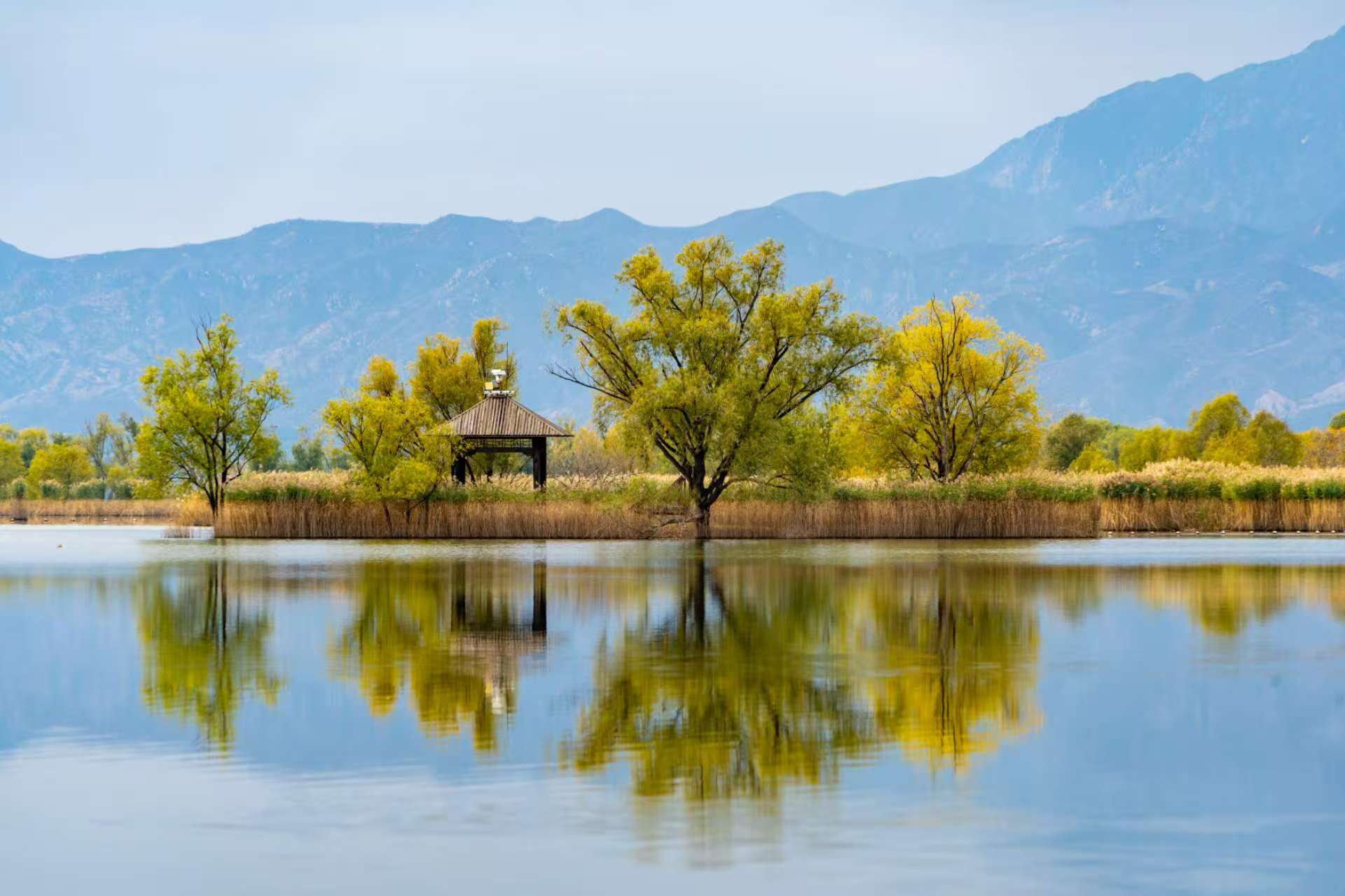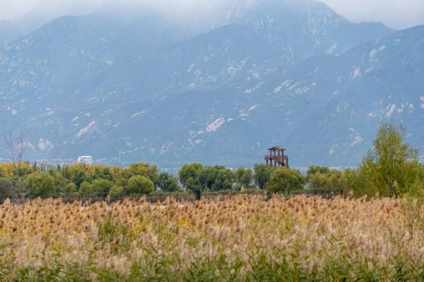 十月的野鸭湖,芦苇荡褪去青翠,披上金黄盛装。微风拂过,层层苇浪如海波起伏,芦花飞舞,与湛蓝湖面、巍峨的海陀山,共同勾勒出一幅动人的生态画卷。