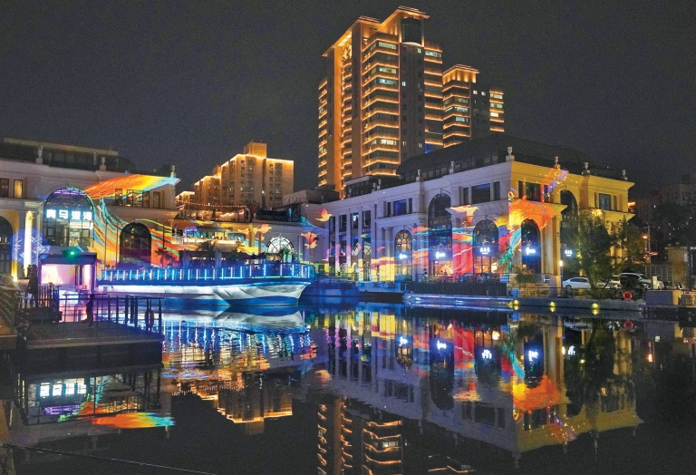 本届朝阳国际灯光消费季上,朝阳区在核心区域用53处特色场景构成了一个立体沉浸式夜游矩阵:在亮马河与朝阳公园沿线,可以欣赏水上光影漂浮舞台“魔方”、水岸声光社交空间“孤独星球”等多场“首秀首演”,与幻光之山、彩虹蹦蹦云、拾光花园等光影艺术装置来个“亲密接触”,还可以免费欣赏《天鹅湖》《漂浮歌后》等演出;在奥林匹克中心区,奥林匹克塔化身360°光影载体,与奥森“山秀”、奥海“水秀”、中轴北延长线奥森南门广场“轴秀”呼应,给市民游客带来超炫酷的艺术享受……