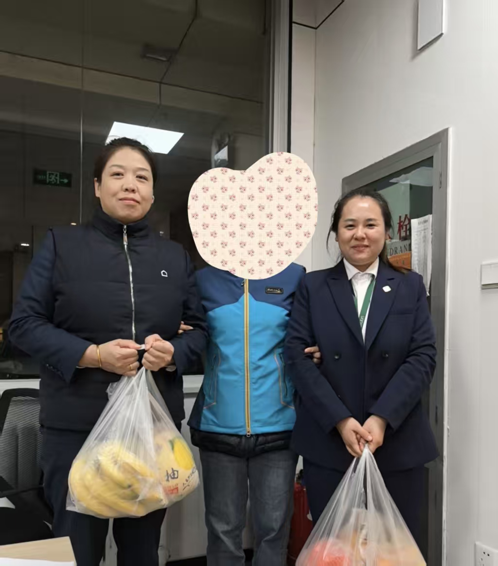 过了不一会儿,朱女士拎着两大包水果赶到店里,当面感谢了胡金华和王琼。朱女士说,她的儿子今年还不满2岁,姐姐也刚上幼儿园。下午自己来接女儿回家,没承想刚学会开家门的儿子趁奶奶不注意自己出了门,而奶奶却以为是妈妈带走了孩子。幸好胡金华和王琼及时出手,要不然孩子受冻不说,还可能遇到更危险的情况。交谈之间,朱女士眼眶泛红,表示刚才有点蒙,回家后越想越后怕。
