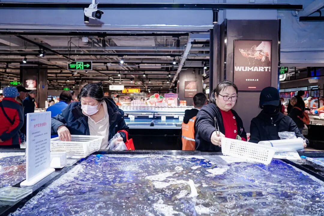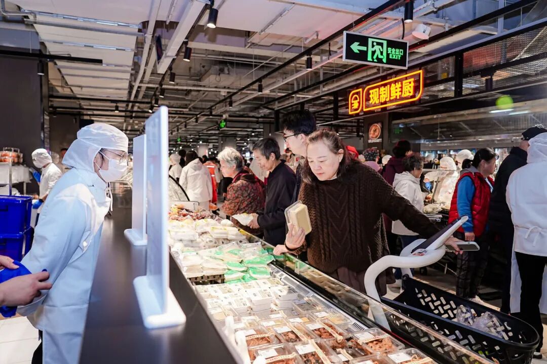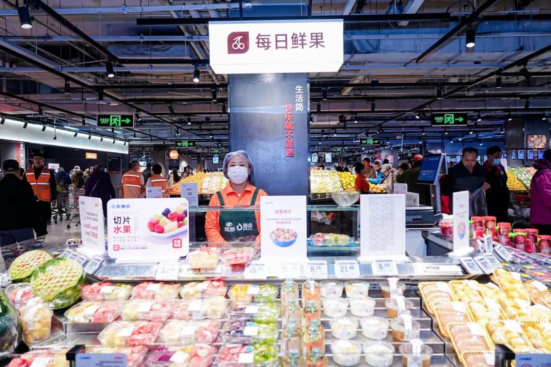 记者现场看到,门店新增果切岛台,多款应季鲜果均可现切并装盒,新鲜又方便;水产区也可现捞沥水,门店还新增了免费的宰杀服务,生鲜上桌的每一步都最大化为居民提供便利。除此之外,熟食、烘焙等品类也围绕“秋季滋补”“家庭暖食”等场景,进行重点扩容和上新。熟食区现烤的北京烤鸭、肉蛋堡、香河肉饼、卤猪蹄等多款暖身菜品,吸引大批居民品尝选购。“秋冬季吃火锅太合适了,门店将吃火锅所需要的内容全部整合在一个区域,购物时也比较方便,不用在卖场来回找了。”市民李女士说道。