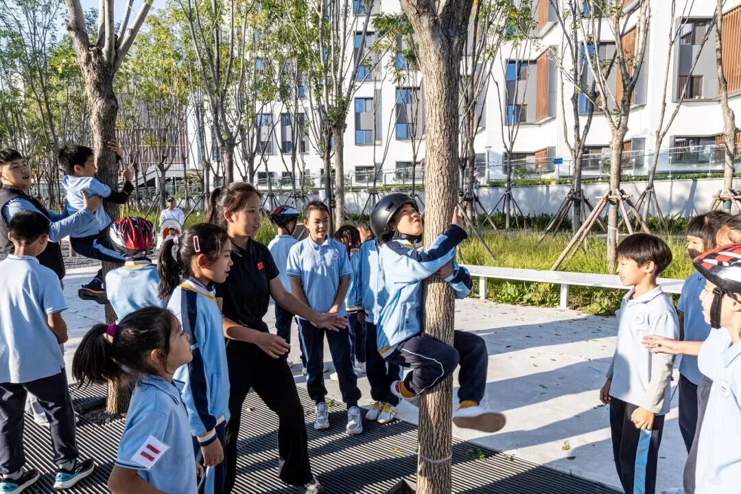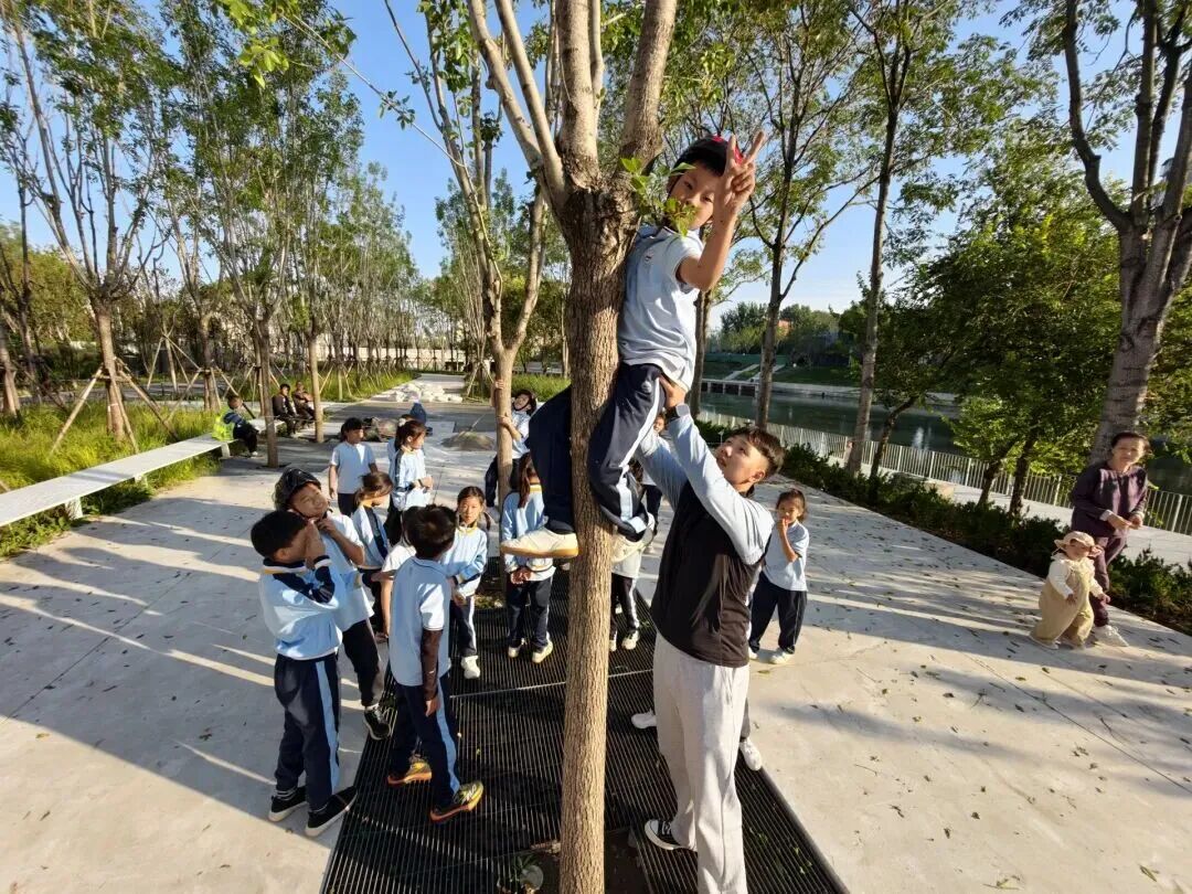 这并非顽童的嬉闹,而是丰台外国语学校"乐学公园"课程中的“爬树课”。