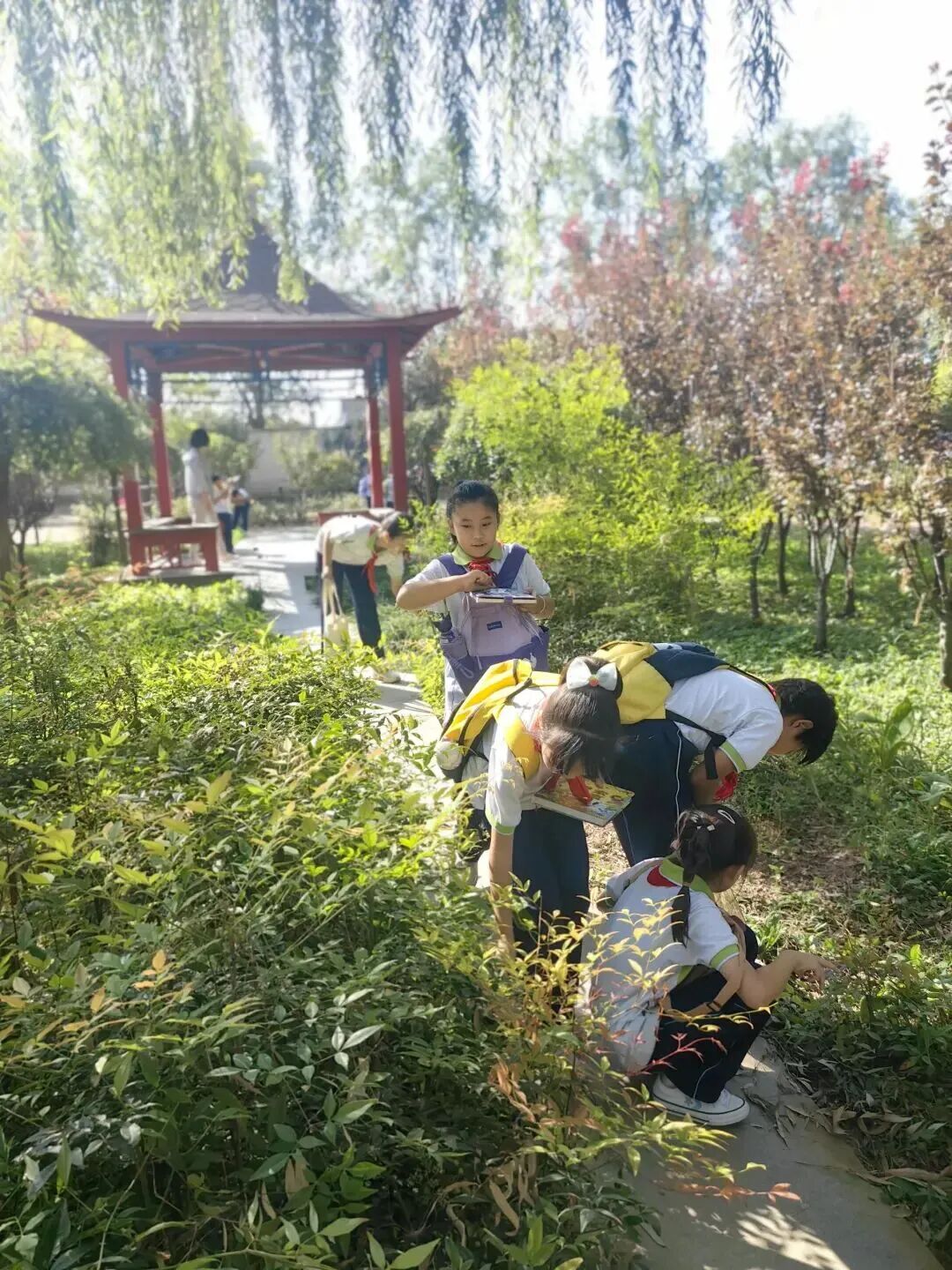 丰台区第八中学附属小学在御康公园开展“乐学公园”实践活动。