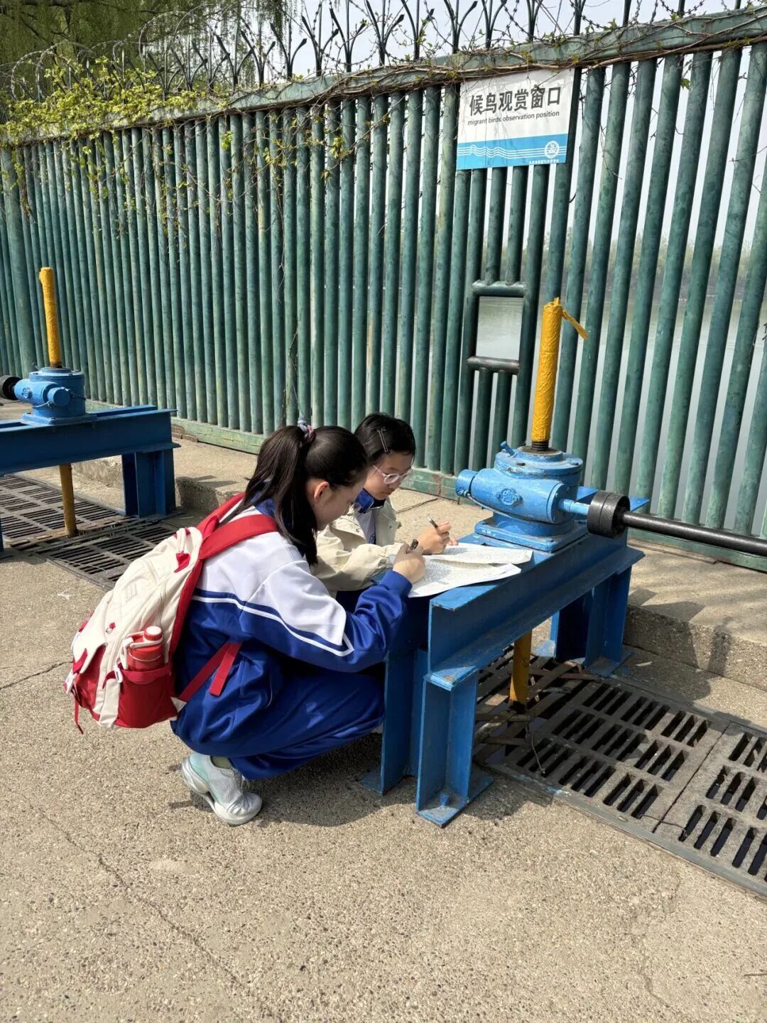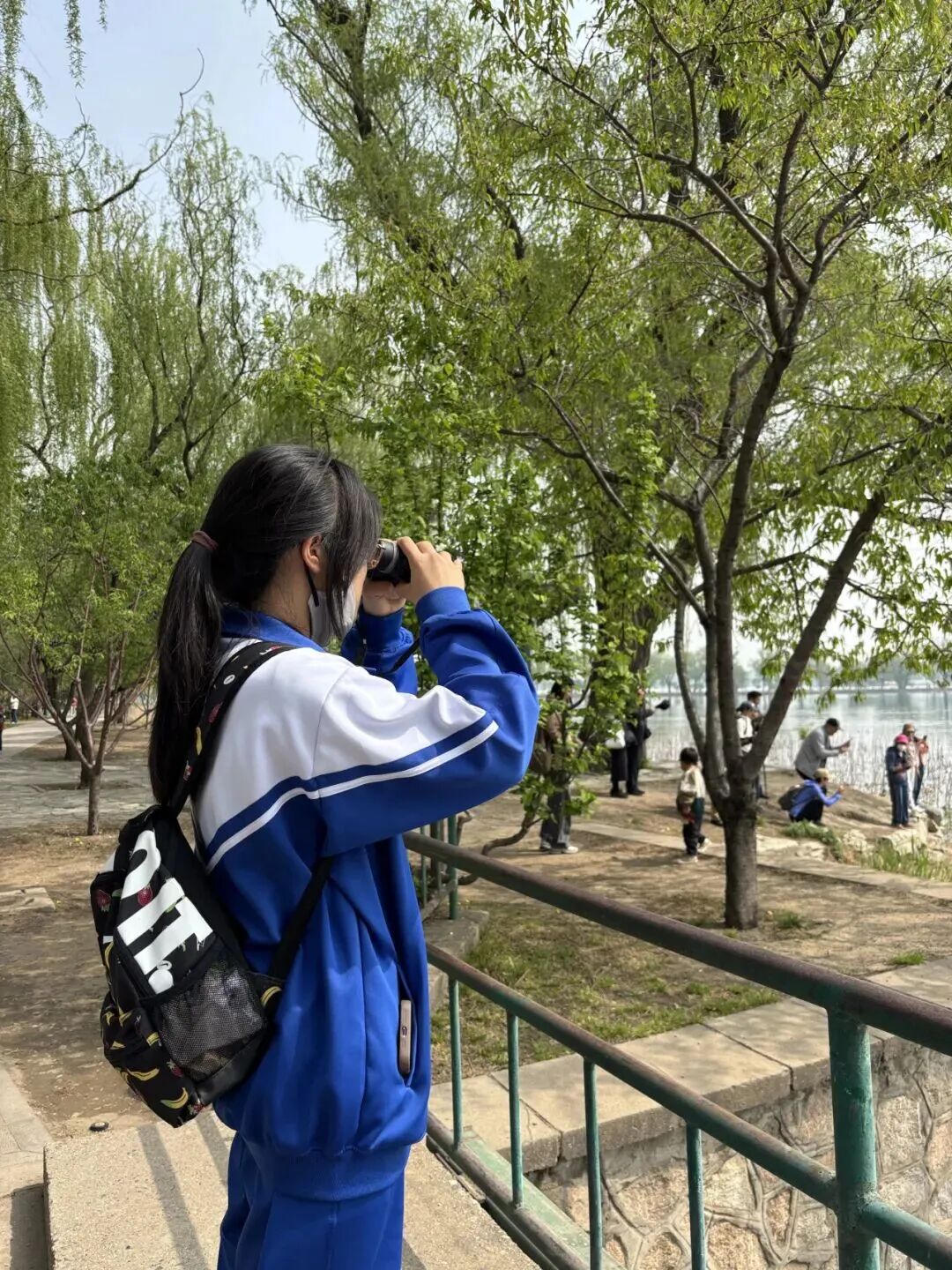 北京十二中学生进行观鸟活动