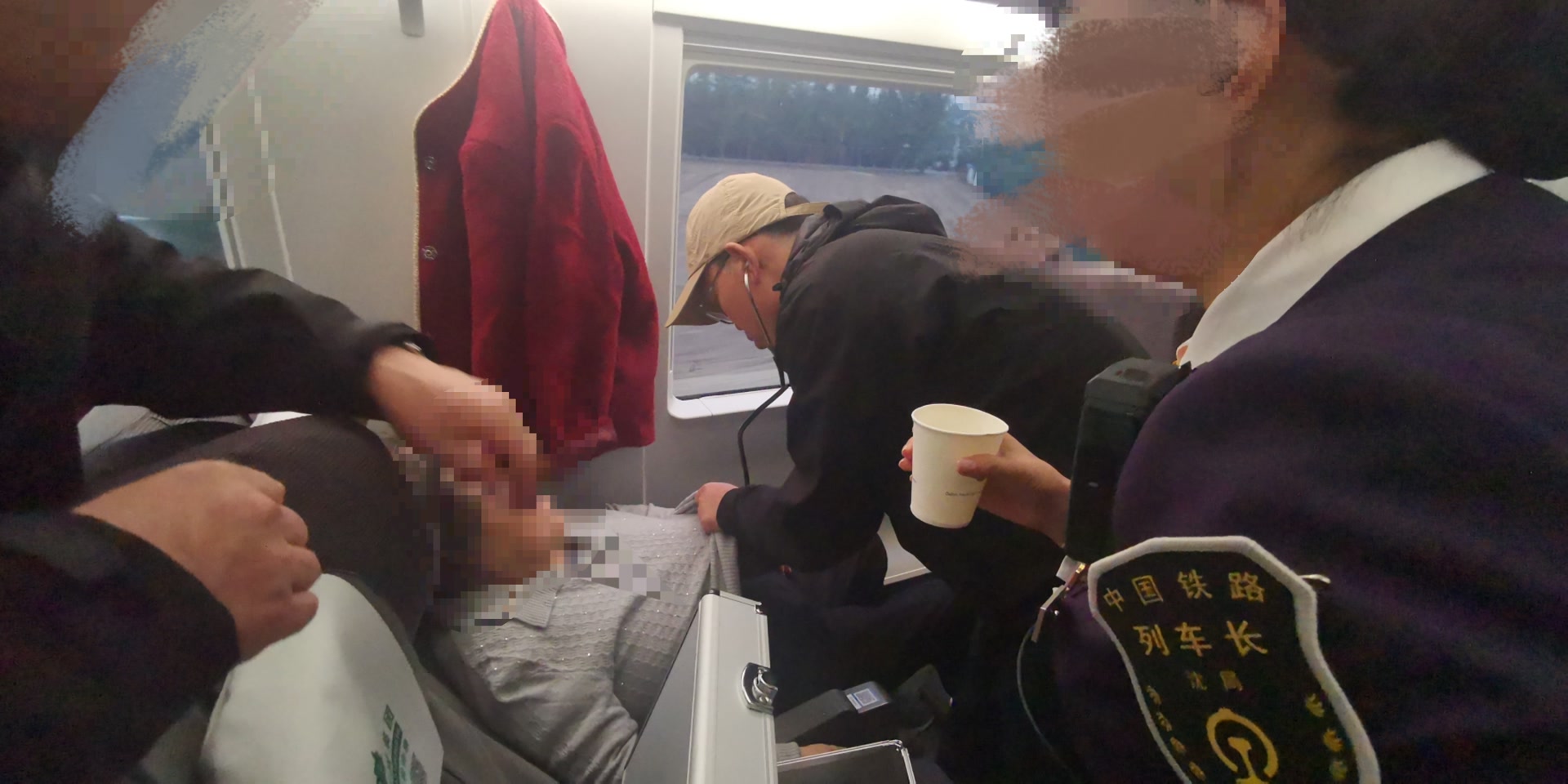 这趟从北京开往大连的列车上,上演了一场紧张而温暖的生命救援。当天,武文峰与国家卫健委能力建设和继续教育中心“连心工程”团队的同事们,乘坐列车前往河北省滦平县开展医疗帮扶,同行的还有宣武医院心内科专家高来顺。列车刚驶离站台不久,车厢里突然响起急促的广播声:“请问有没有医生?1号车厢有乘客需要帮助!”