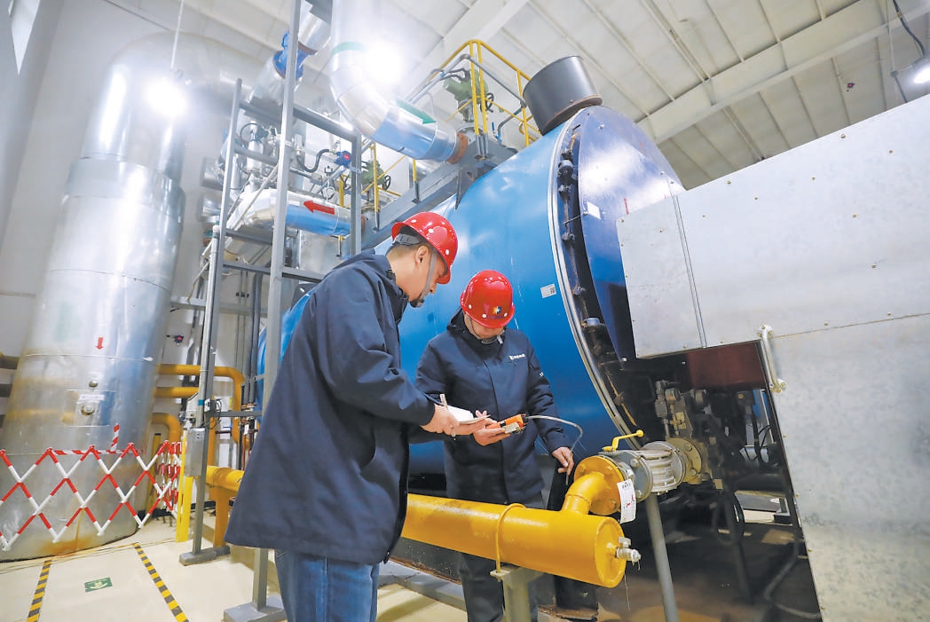 北京热力各项供热设备设施检修技改工作已进入冲刺阶段,图为工作人员检查嘉多丽园小区锅炉房设备。本报记者 甘南摄