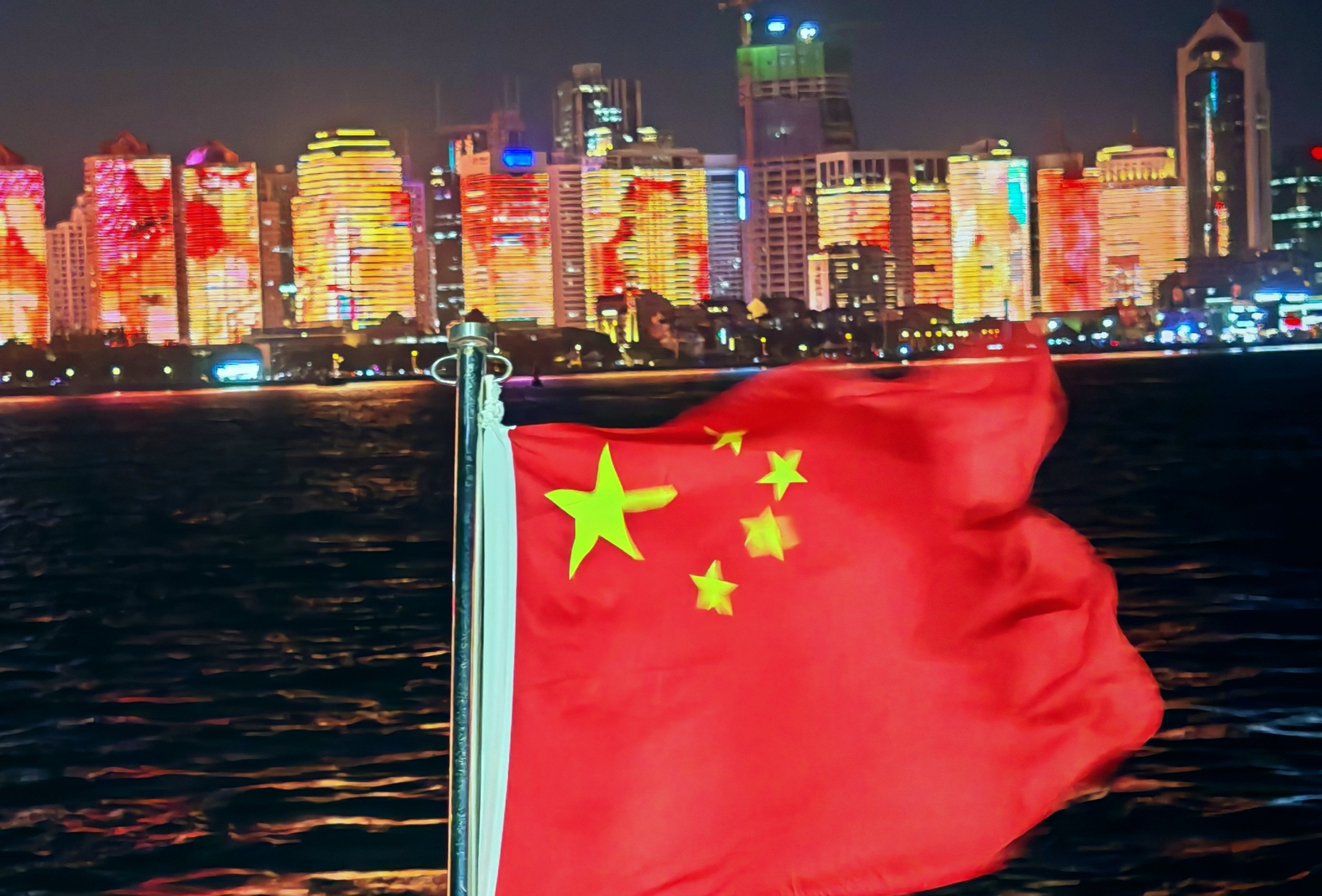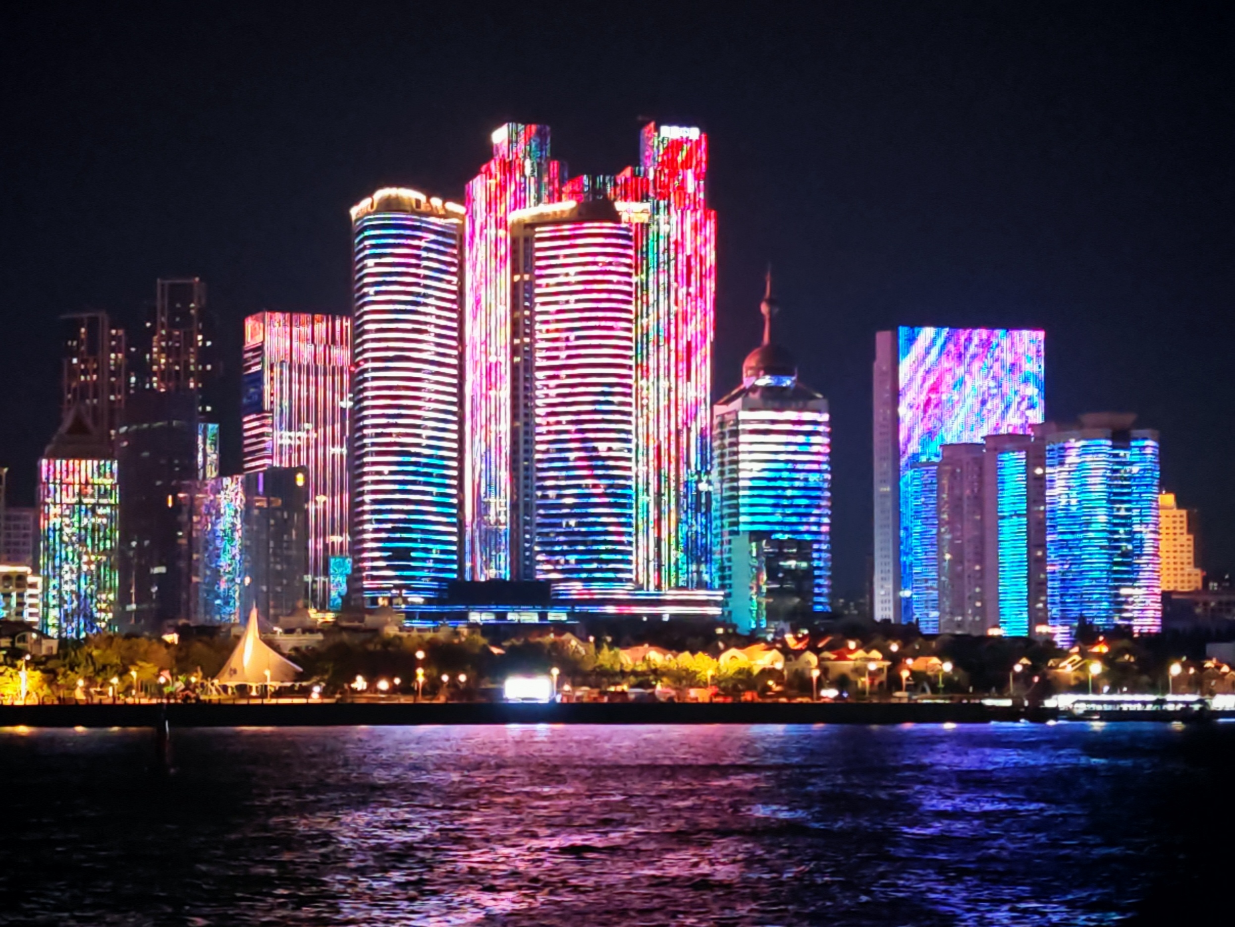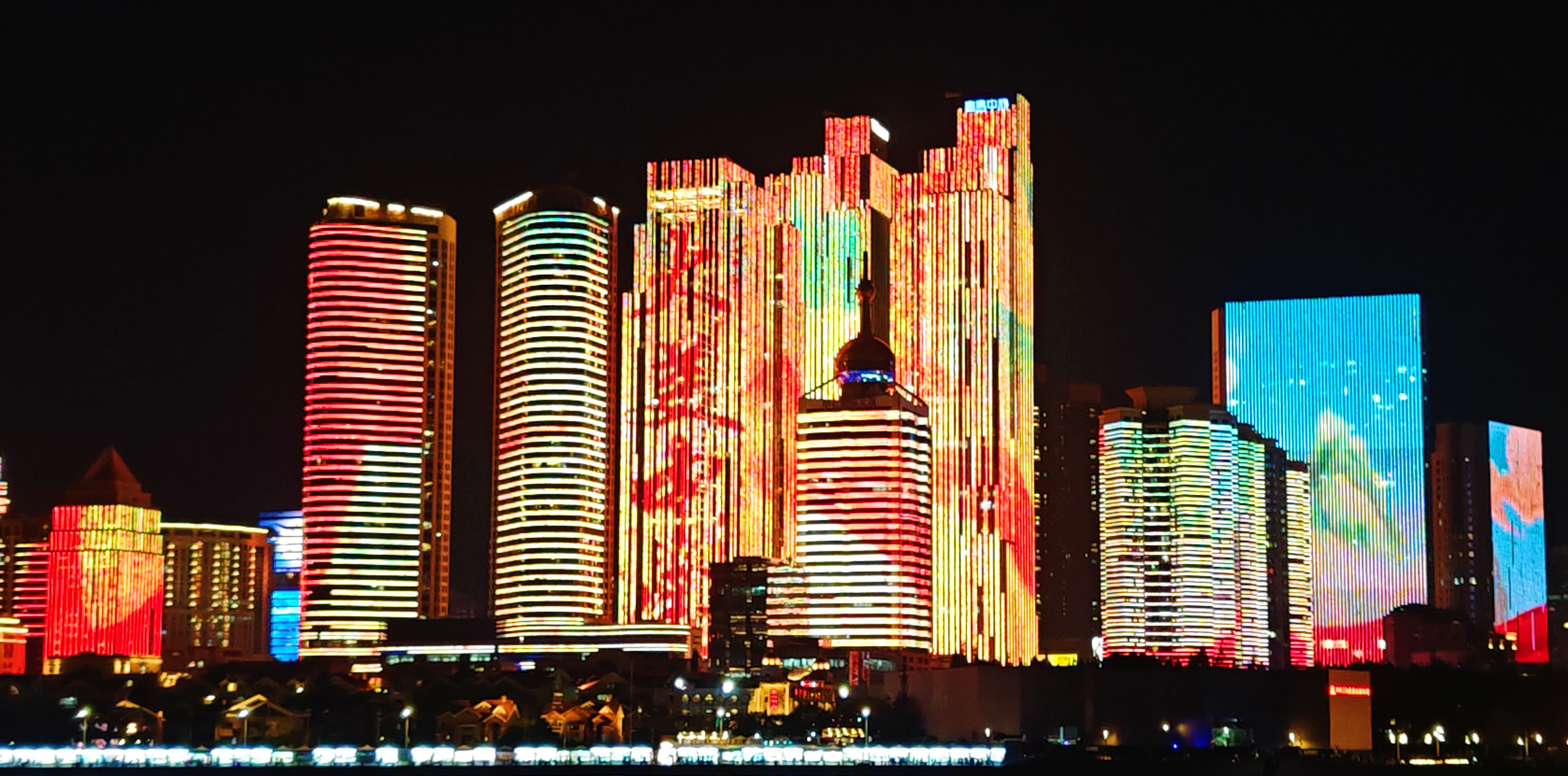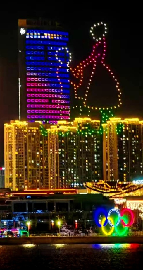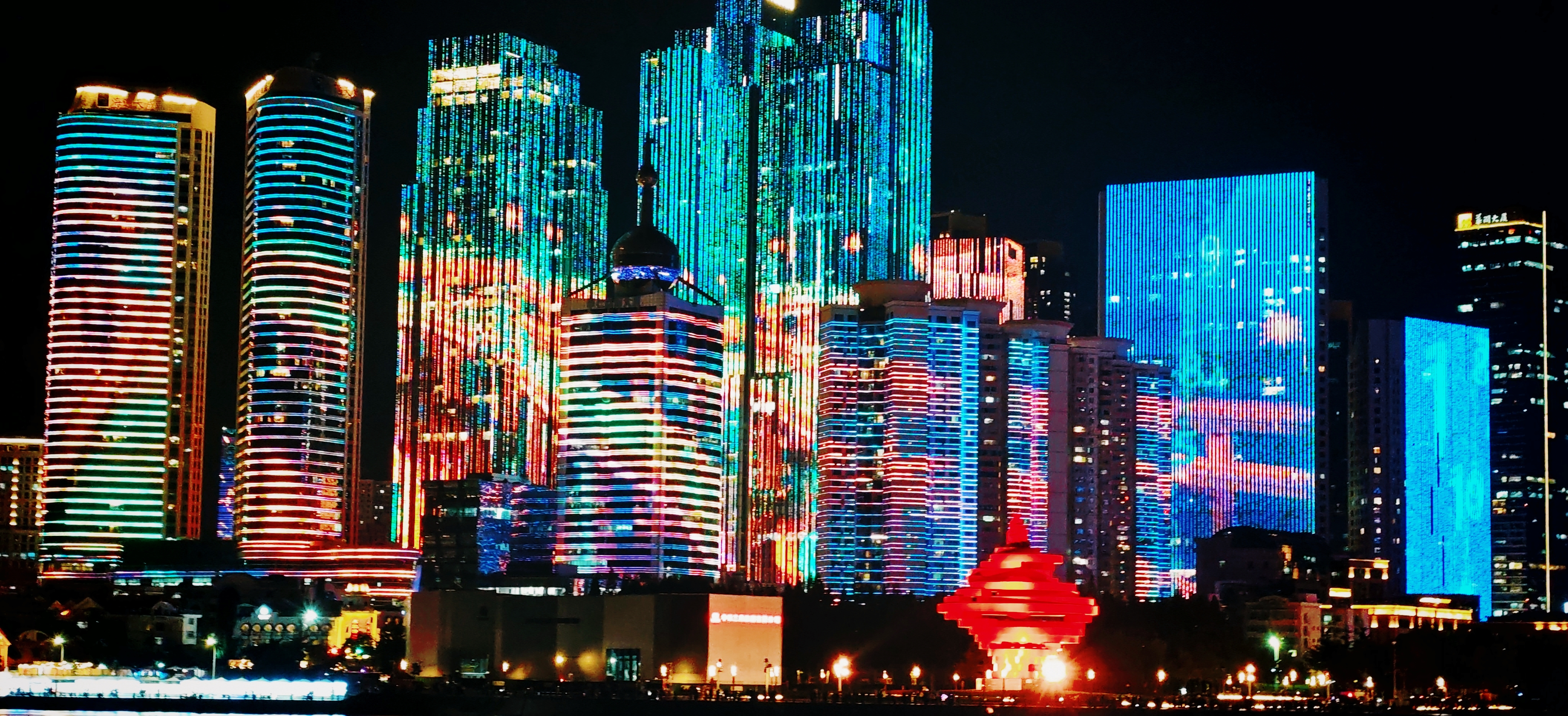 这里是青岛浮山湾。青岛灯光秀,是2018年上合峰会前建成,一直保留到现在。
