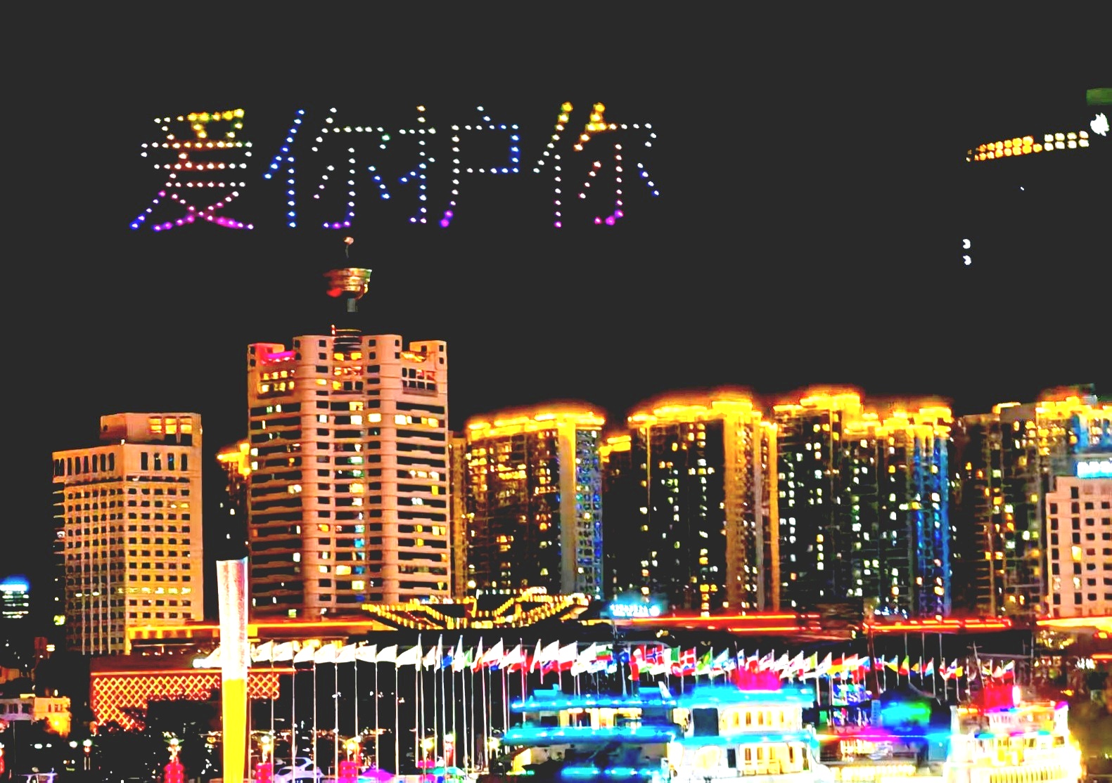 今晚,赶上有人用无人机求婚,齐鲁晚报总编辑廖鲁川用手机记录了这一幕。