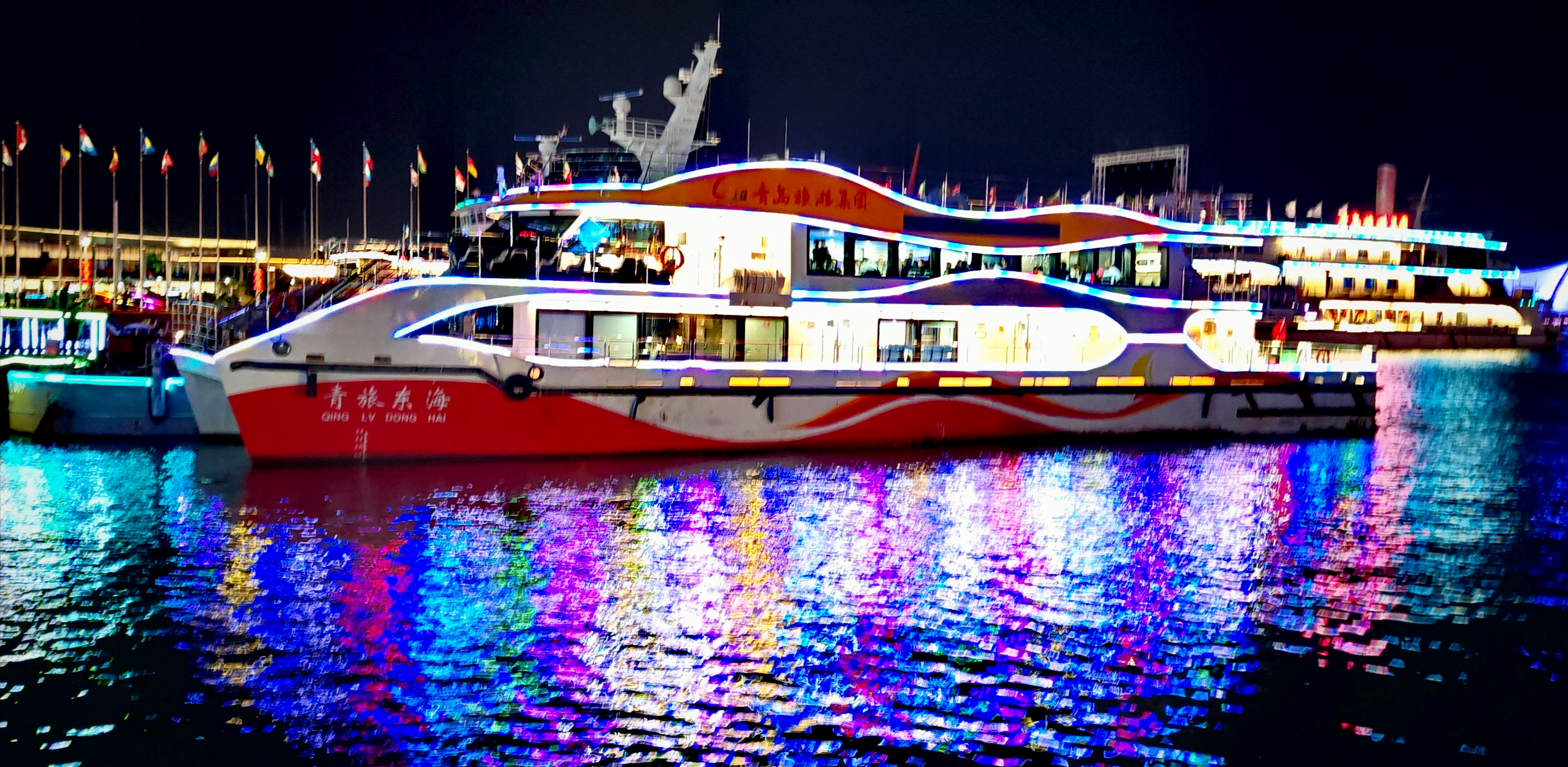 在海上,在游轮上,欣赏陆地的灯光,是什么感觉?