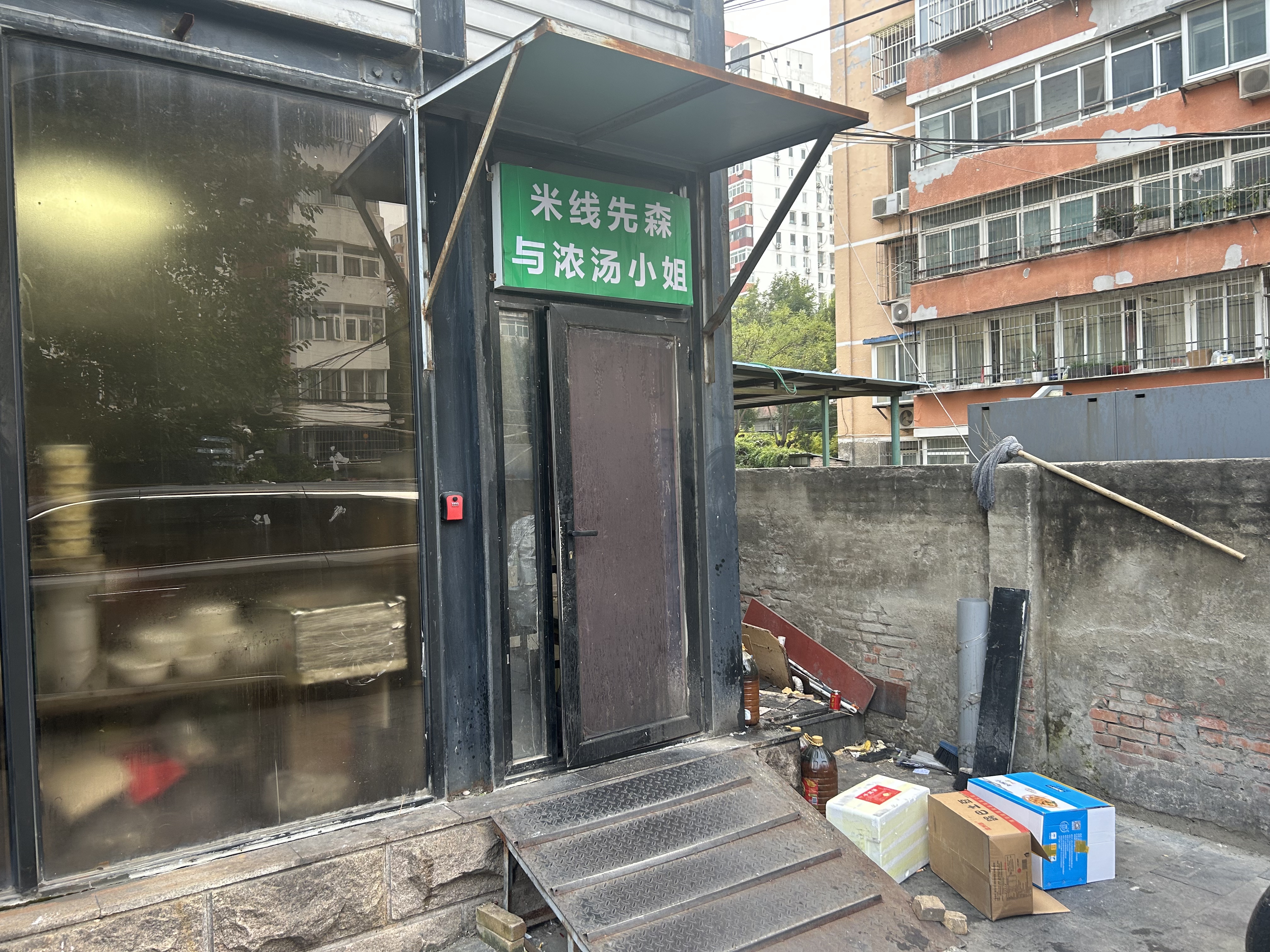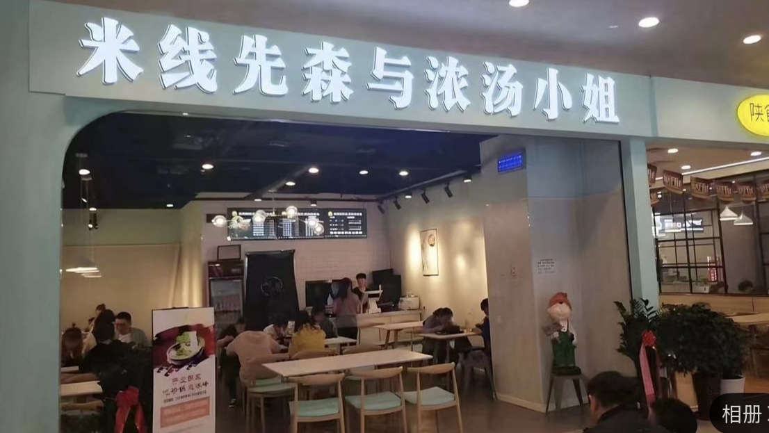 类似的,枣营附近一家米线店,从“实景图”上看,其应位于一个商场内,有不少顾客正在堂食区域就餐。可当记者来到实际地址,却在一处居民院的平房见到这家店。它面积不大,没有堂食区域,门口放置着一个架子供骑手取餐,内里挡得严严实实。