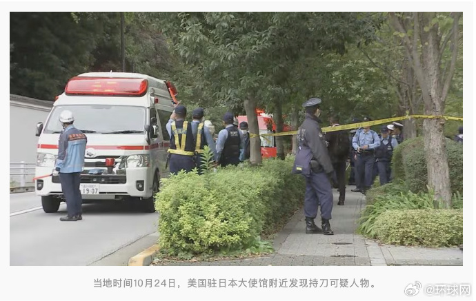 据日本富士新闻网报道,当地时间10月24日,在美国驻日本大使馆附近执行安保任务的日本警察发现一名男性可疑人物,其持有刀具。一名警察在试图扣押该男子刀具时受伤,男子被当场逮捕,警方正在对事件展开进一步调查。