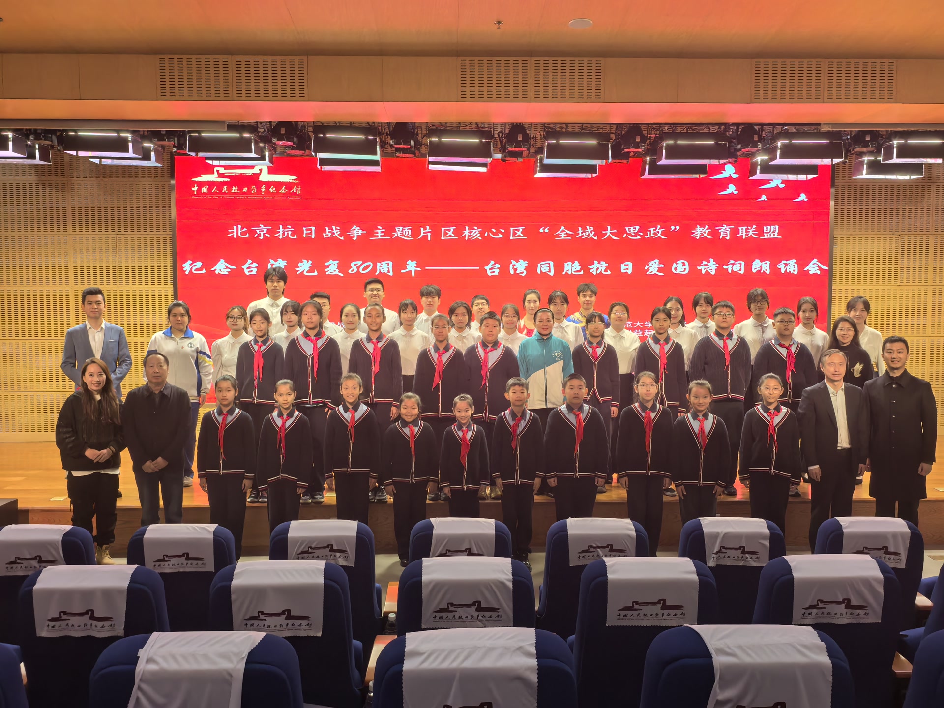 2025年是中国人民抗日战争暨世界反法西斯战争胜利80周年,也是台湾光复80周年。10月24日,北京抗日战争主题片区核心区“全域大思政”教育联盟的大中小学生齐聚中国人民抗日战争纪念馆,举办“纪念台湾光复80周年——台湾同胞抗日爱国诗词朗诵会”,以诗忆史、以声传情,共盼两岸统一。