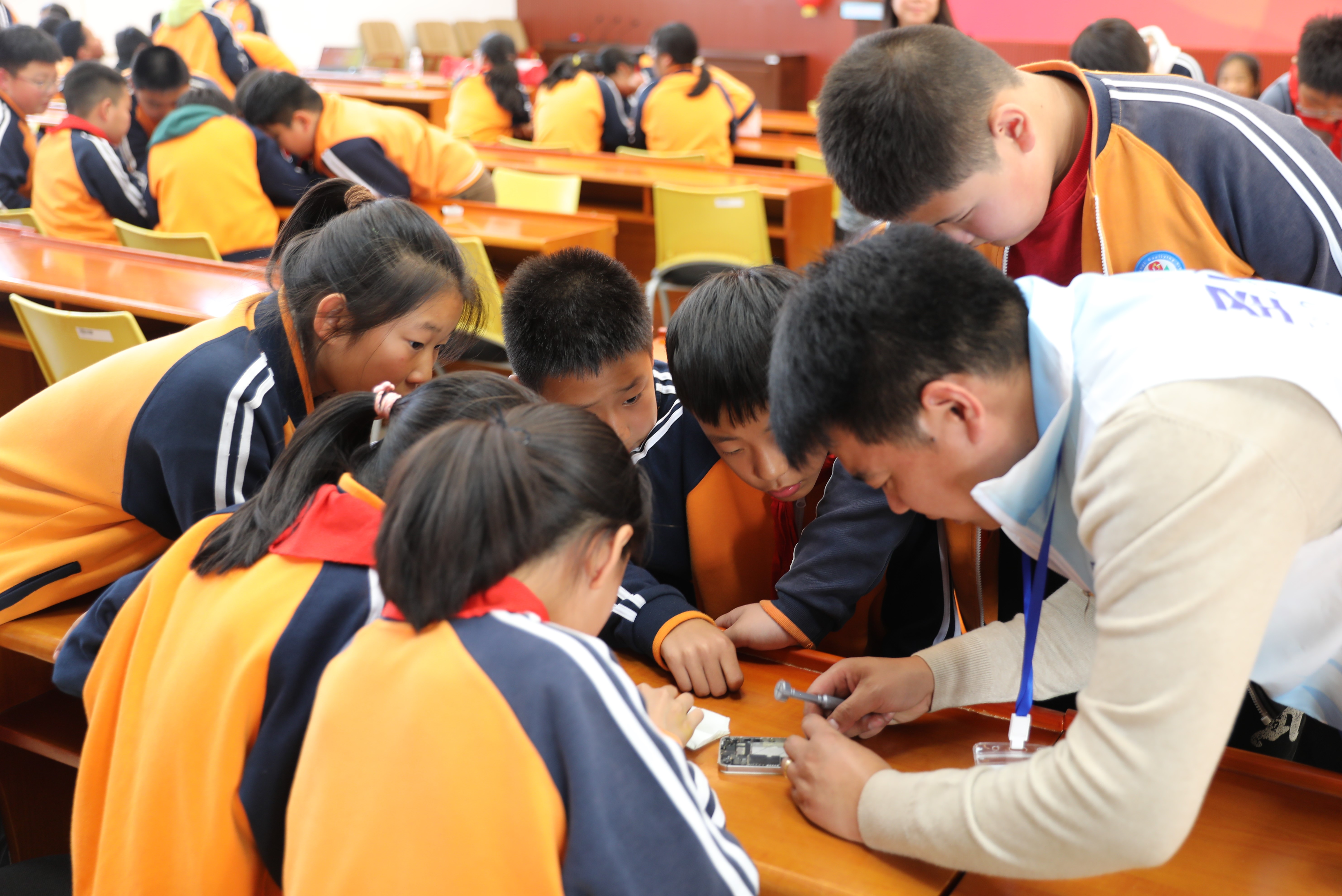 “科普创新实践活动”环节则将学生们从圣火的激情带入科学的海洋。在导师指导下,学生们化身“小小科学家”,进行手机拆解与组装,通过观察内部结构了解电子垃圾的危害与回收知识,将环保理念融入科学探索,增强绿色发展的社会责任意识。