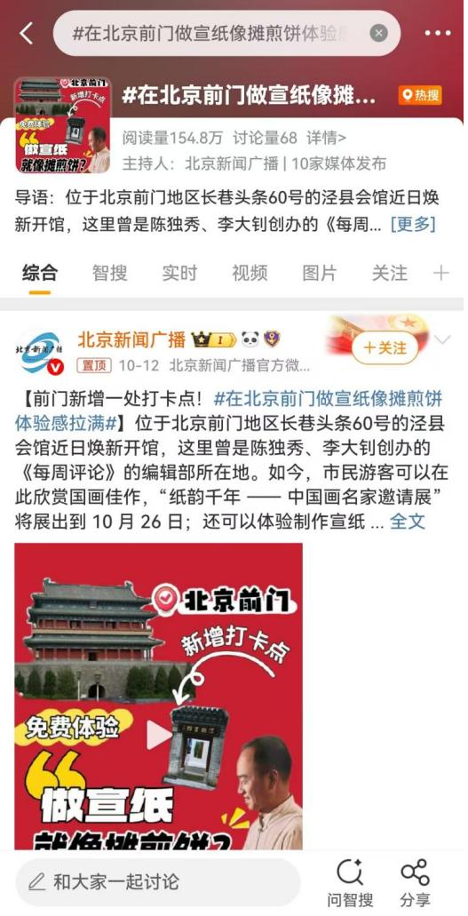 本次活动获得众多主流媒体平台的广泛聚焦,媒体融合传播成效显著。《北京日报》《新京报》《北京晚报》等推出报道,北京卫视在新闻时段播出专题内容、生动展现活动亮点场景,北京新闻广播同步推出视频报道,微博、抖音、小红书及微信视频号等平台上的#聚京彩游会馆#等相关话题也持续发酵,累计阅读量突破千万。