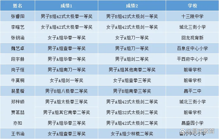 经过层层选拔,昌平区共有12名运动员入选北京市代表队,分别编入北京市武术运动协会四队、北京市武术运动协会八队和北京市武术运动协会舞佳武苑队。