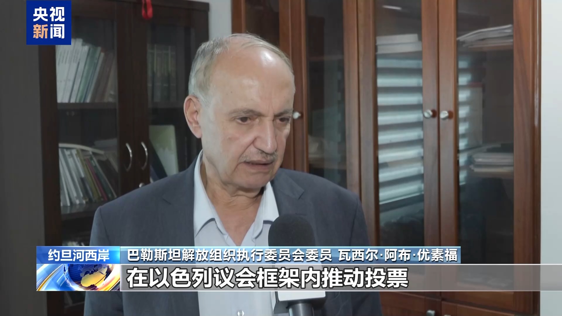 巴勒斯坦解放组织执行委员会委员 瓦西尔·阿布·优素福:部分政客企图在以色列议会框架内推动投票,将吞并约旦河西岸的行为彻底合法化。以色列方面的行为反映出,其对国际合法性决议与国际法的漠视。