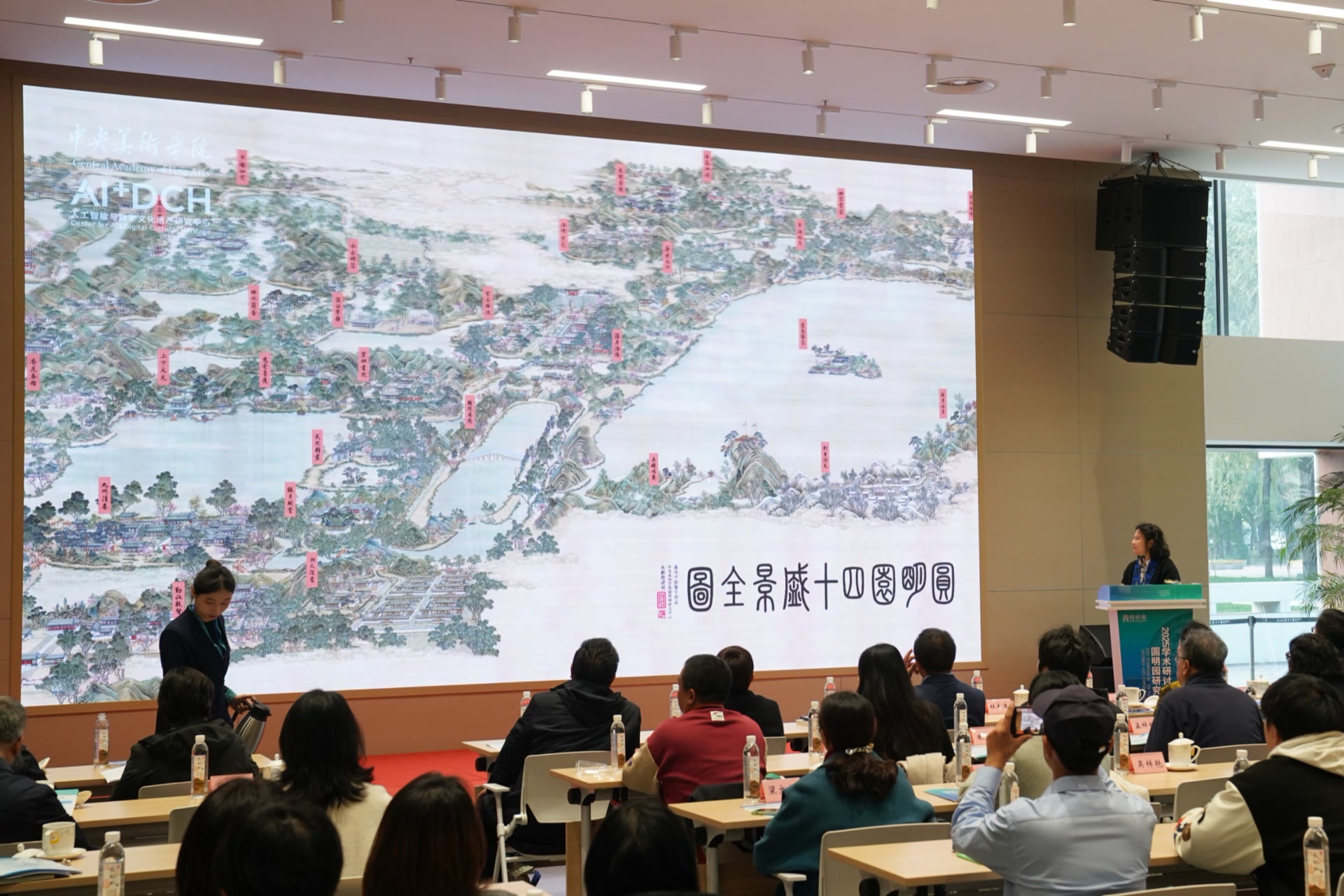 此次研讨会开幕式上,首次发布《圆明园四十景数字化复原及应用》成果,该项目是由圆明园管理处与中央美术学院人工智能与数字文化遗产研究中心历时两年合作完成。通过整合多源历史资料,对清代宫廷画家唐岱和沈源绘制的《圆明园四十景图咏》四十幅分景图进行对位、拼接与校准,组成一幅完整的圆明园四十景全景图;运用中央美术学院复原团队自创清代官式建筑模型数据库及参数化设计、模块化搭建等行业领先数字技术,辅以三维扫描、GIS等技术,完整地呈现了清乾隆九年(1744年)前后圆明园四十景的整体壮丽风貌。