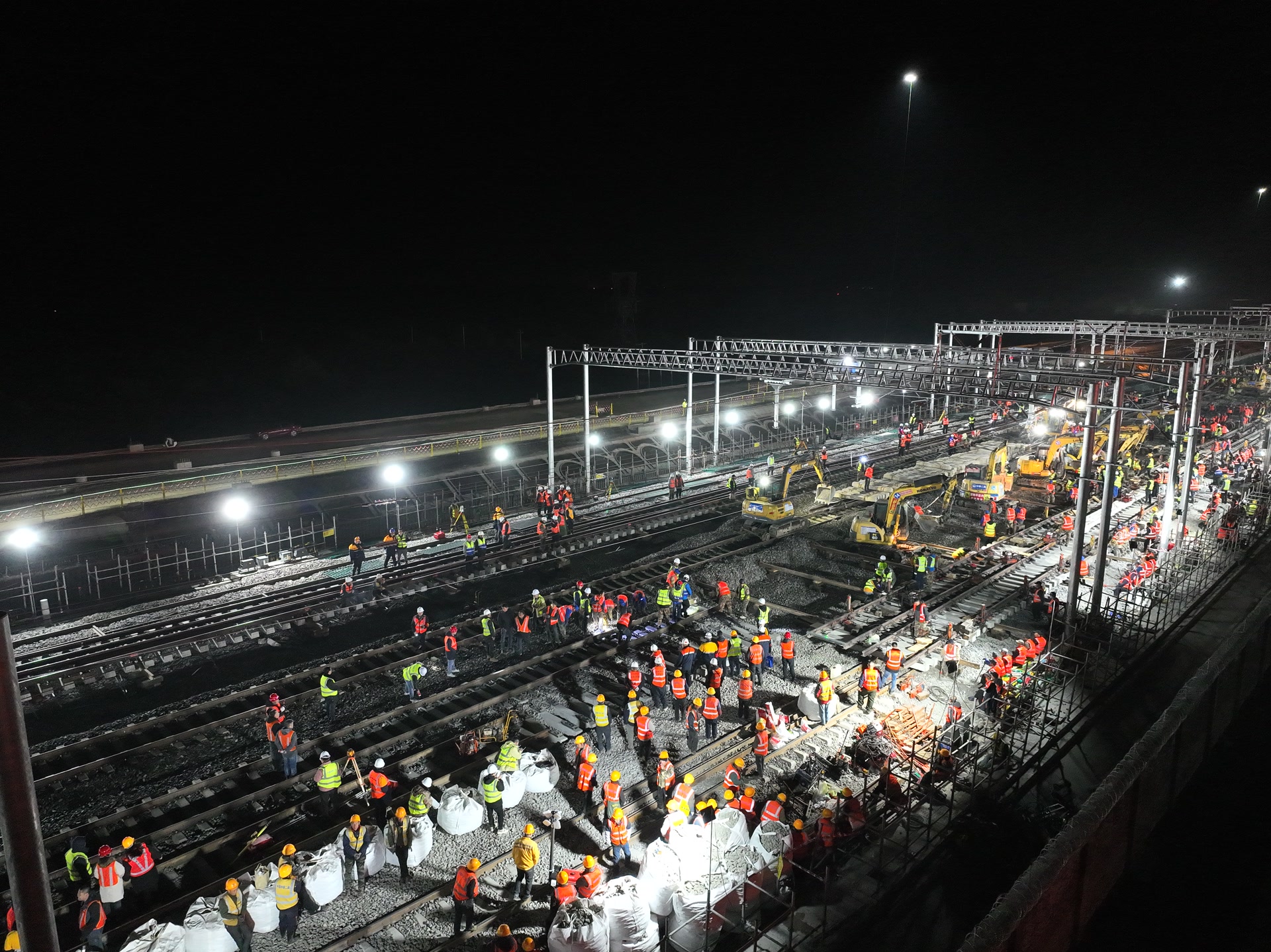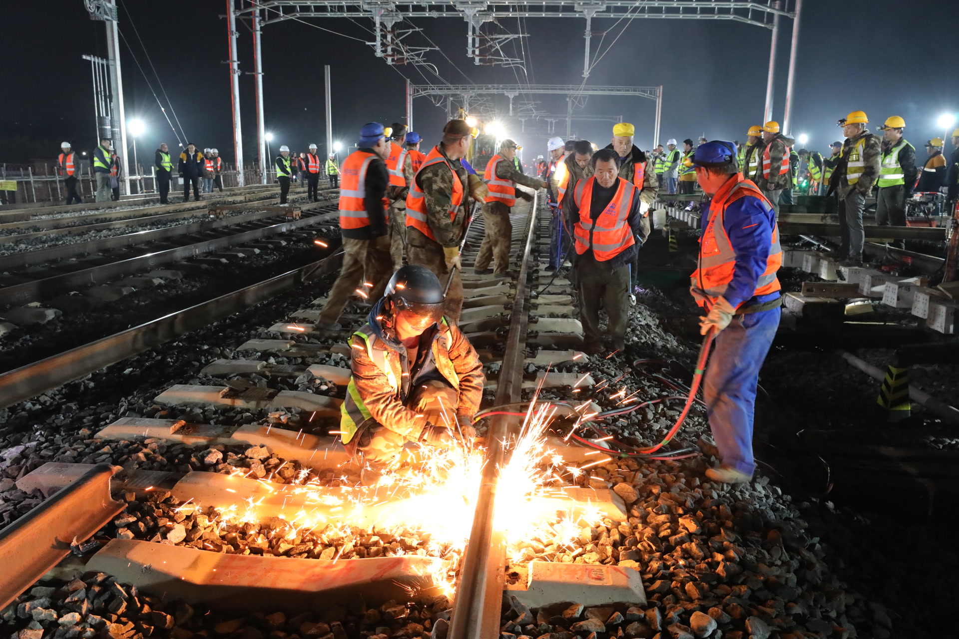 10月25日清晨,京港高铁雄商段衡水枢纽工程施工现场,880名建设者鏖战近9小时。随着锯轨、清砟、既有线路拆除、道岔插入等各项施工任务的顺利完成,该工程第二组42号道岔精准插入既有石济客专衡水北站下行线,这标志着京港高铁雄商段与石济客专实现互通,为线路全线开通运营奠定了坚实基础。