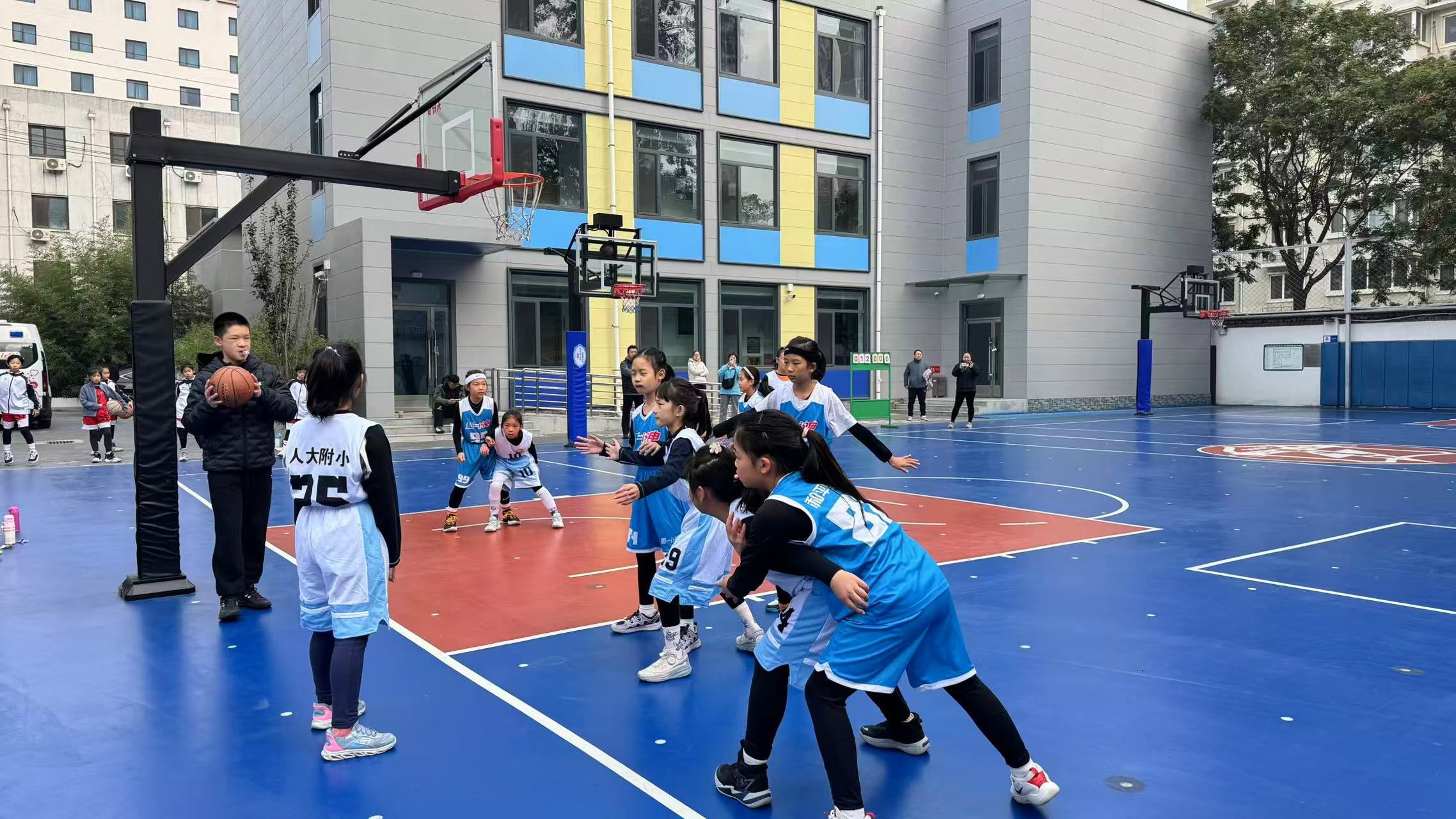 看着孩子们在球场上奔跑、欢笑,蒋教练的笑容里有藏不住的骄傲,也有满满的期待。蒋教练说,为了这次百队杯,球队经常一起复盘,还有U12的“大师姐”和教练来帮忙特训。“前几天我们死磕投篮,今天罚球全进了!”