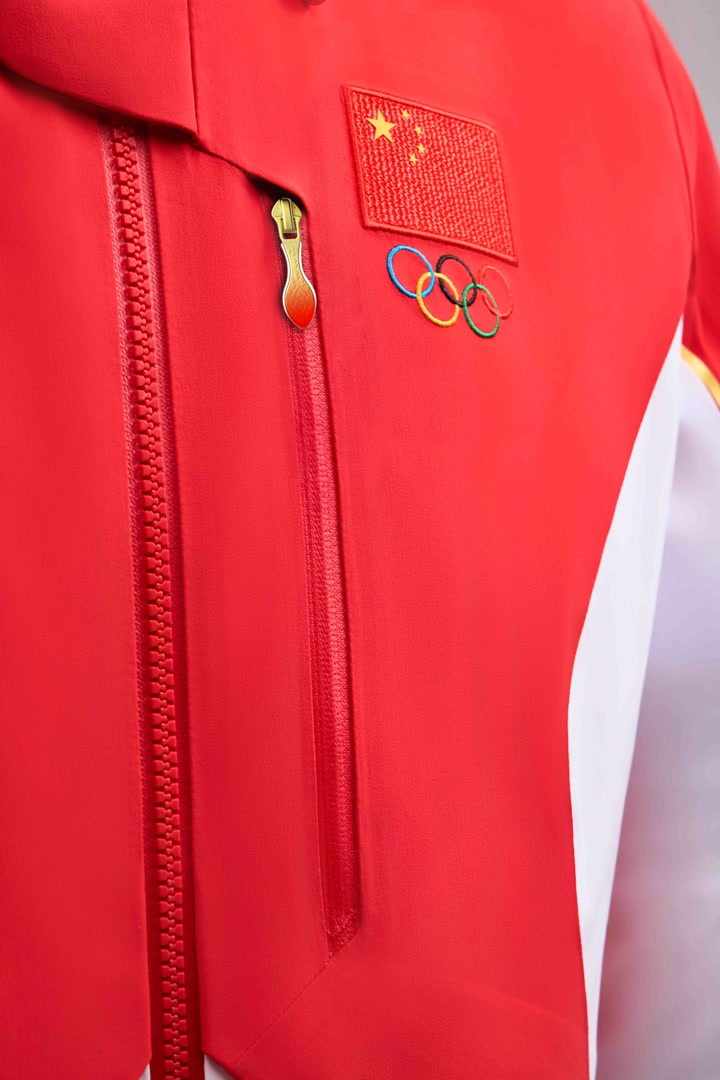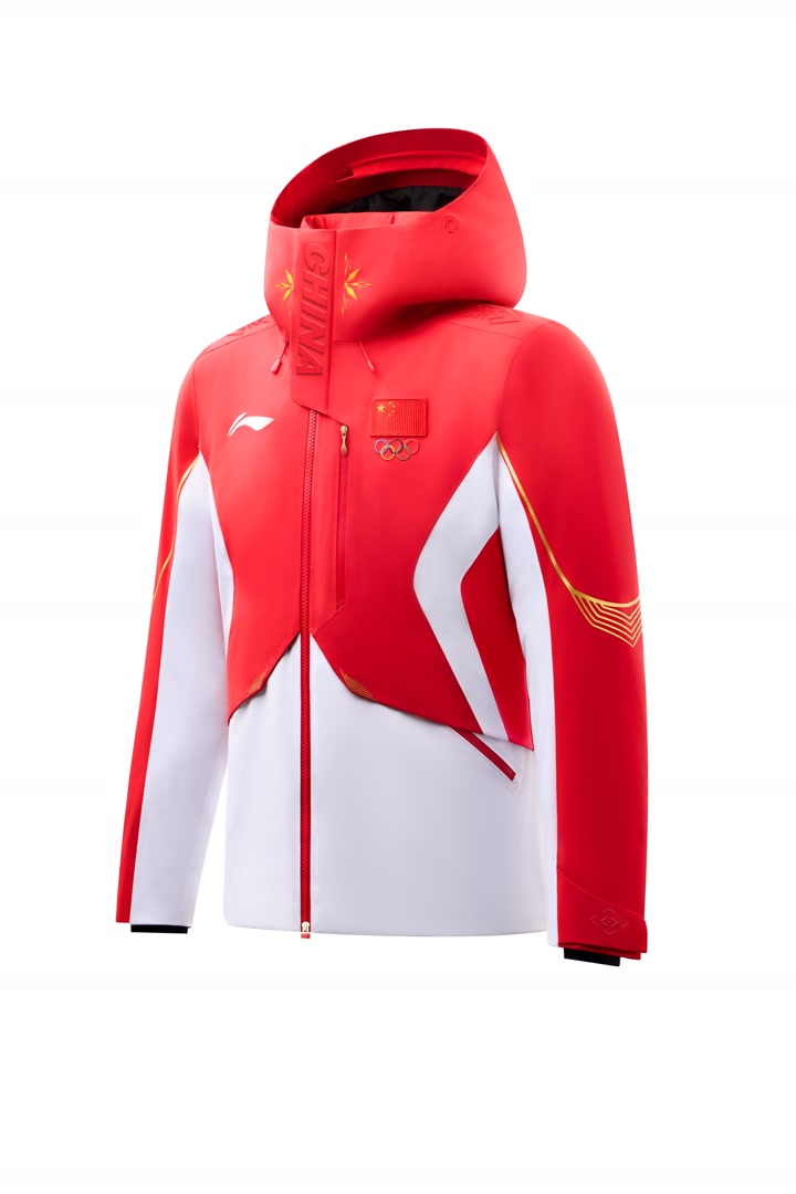 2026年米兰冬奥会中国体育代表团领奖装备以红、白两色为主色调,其中“中国红”彰显中国文化元素,在服装正面勾勒出象征五角星的线条;“雪山白”的灵感则源自冬季运动场景,也融入了东方审美里的留白意境,并在侧身勾勒出李宁品牌标识线条,同时搭配以雪道为原型的金色流线型线条为点缀。装备全身以上红下白的色彩拼接,凸显中国运动健儿的挺拔身姿。