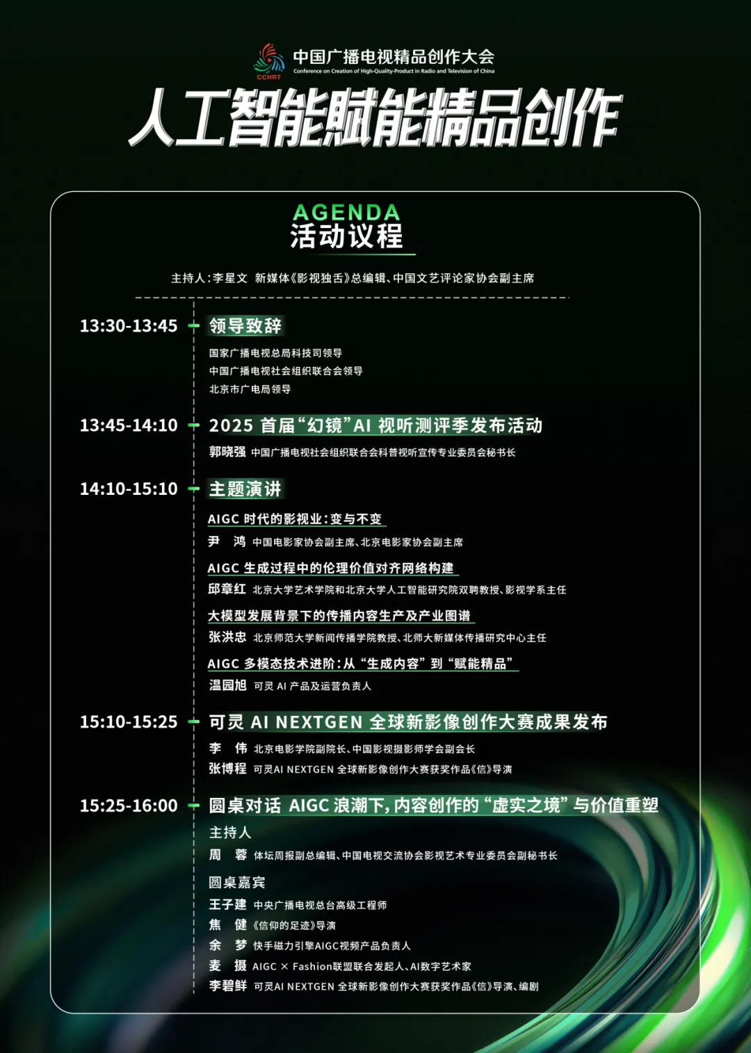 本次沙龙集思想交流、视觉呈现、资源对接与全球视野于一体,打造多维交流平台。现场将启动2025首届“幻镜”AI视听测评季发布活动,发布测评结果和研究分析报告,播放优秀片单视频片花和技术指标。