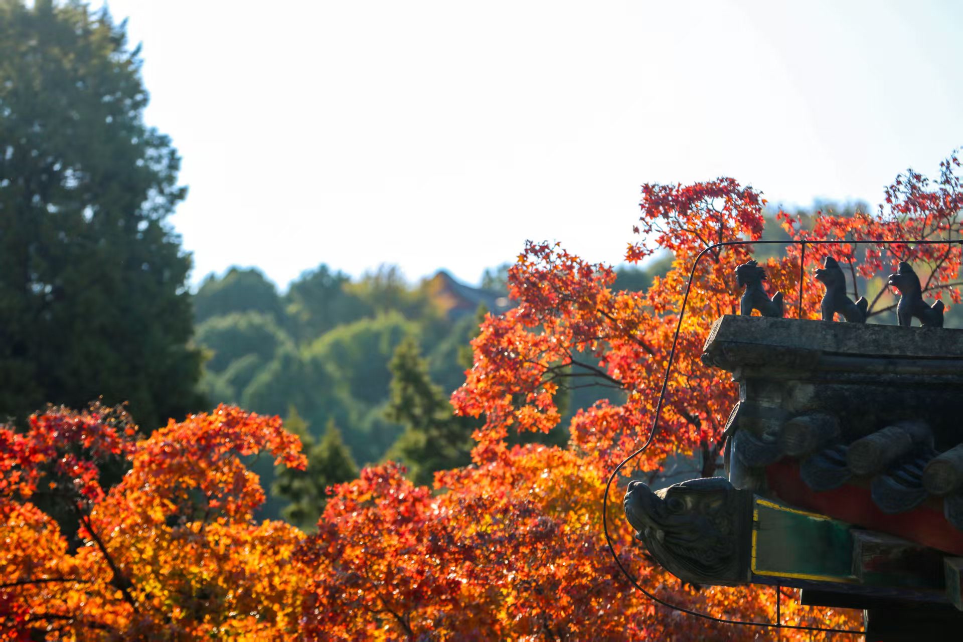 目前,变色红叶主要集中在中下山区及景区核心区域,呈现出红、黄、橙点缀于青绿之间的斑斓画卷。山上部分区域因海拔和小气候影响,变色稍晚,仍以绿色为基调,这使得整体的色彩层次更为丰富立体。未来一周,随着温差持续,变色率将迅速攀升,秋色将愈发浓烈。