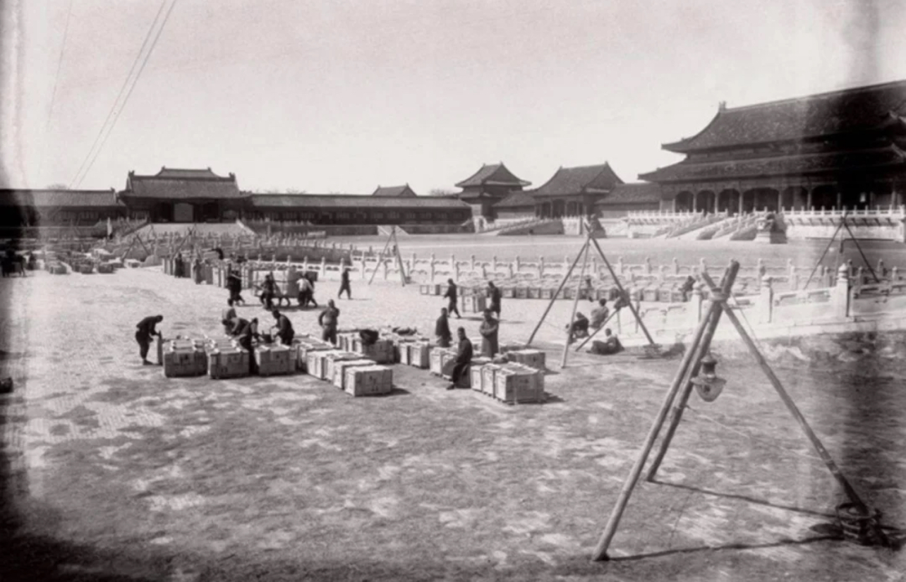 “九一八事变”后,华北告急,为了抢救故宫文物不使落入敌手,专家提出“文物南迁”计划。1933年2月5日夜,北平全城戒严,几十辆板车从神武门出发,直奔火车站,车上装的正是故宫博物院精选、打包好的13427箱又64包文物。押送文物的工作人员中,就有梁金生的爷爷梁廷炜,他们立下“人在文物在”的誓言后向南出发了。