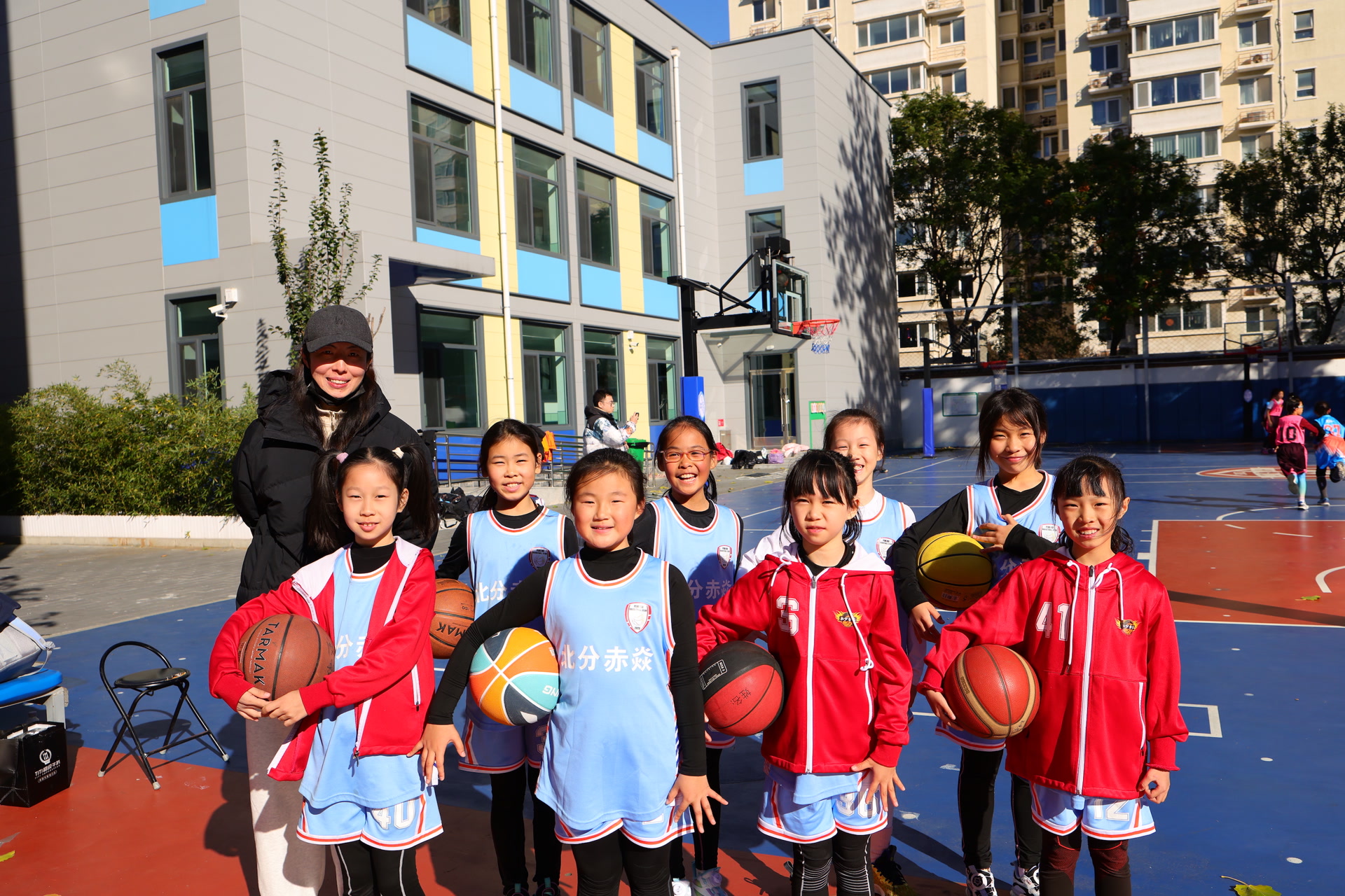 “我们学校篮球队成立超过10年,男队的成绩一直比较好。近两年来,先后获得2023年、2024年北京市中小学生校园篮球联赛冠军,2023年还曾夺得过咱们百队杯篮球赛的季军。”王教练说,“相比男队,女队的成立时间要晚一些,但这几年成绩进步很快。基本每个年级都有超过20名学生加入篮球队,大家每天训练,一起进步,氛围特别好。”