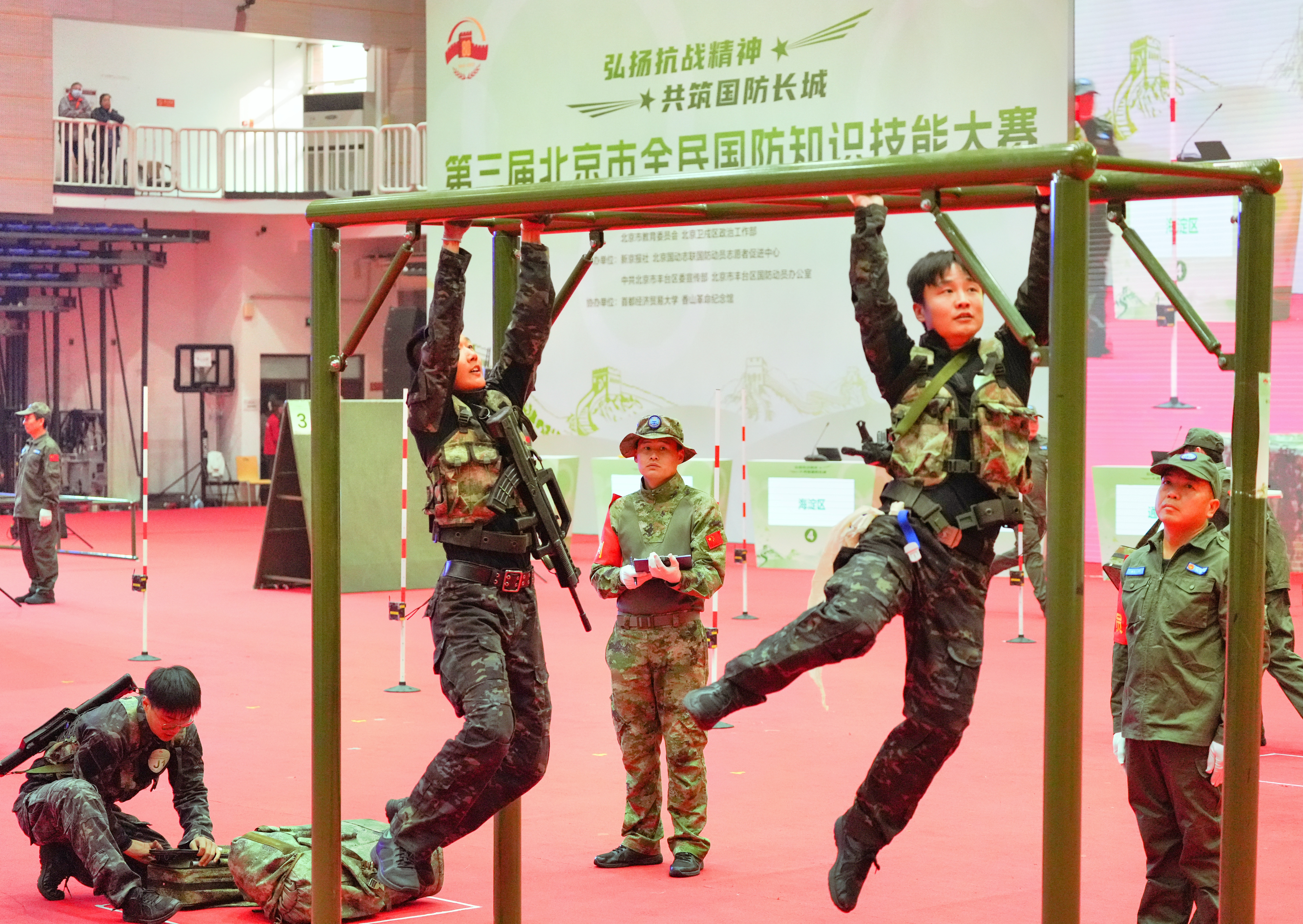 10月25日,第三届北京市全民国防知识技能大赛决赛在首都经济贸易大学举行,12支队伍展开激烈角逐。经过体力与脑力的双重较量,朝阳区代表队夺得社会组冠军,中国矿业大学(北京)代表队摘得高校组桂冠。