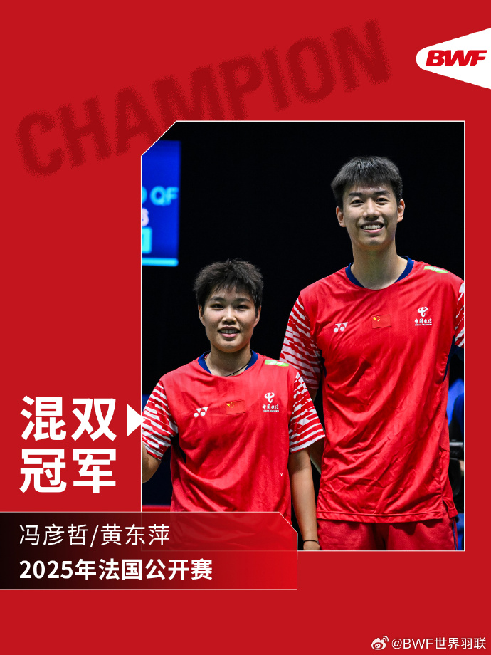 一鼓作气,拿下赛季第七冠!恭喜冯彦哲/黄东萍夺得2025年法国公开赛混双冠军,恭喜德差波/苏皮萨拉获得混双亚军!