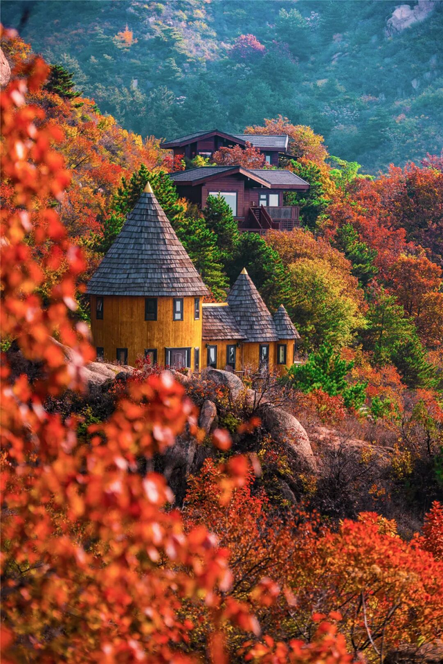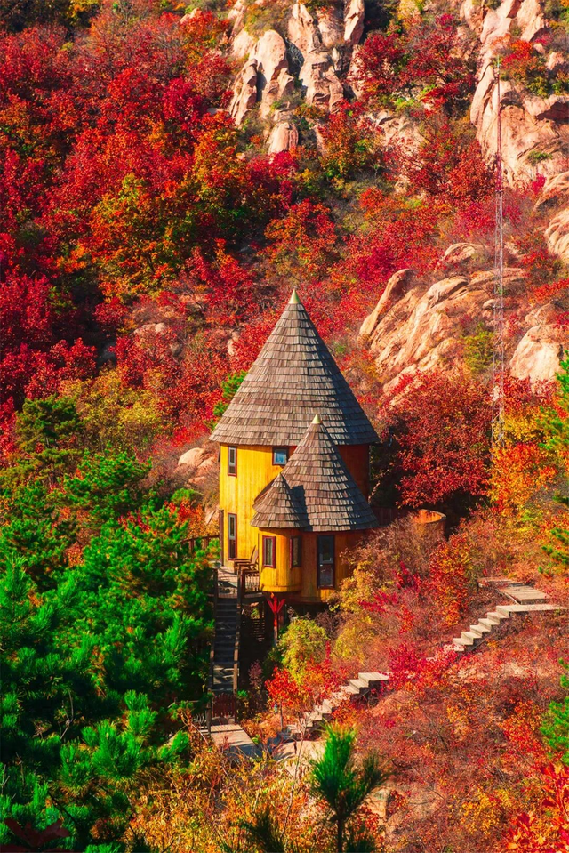 秋日的云峰山,三步一景。漫山秋色如斑斓调色盘,远眺童话树屋点缀其间,裹一身红叶,与古意山林共酿一季醉美时光。
