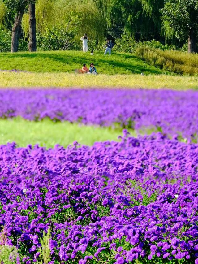 近日,一亩园公园西北角,绵延紫色花海如染色云霞,由浅至深,随风起伏,夹杂着淡淡的草木香,让人瞬间忘了城市的喧嚣。