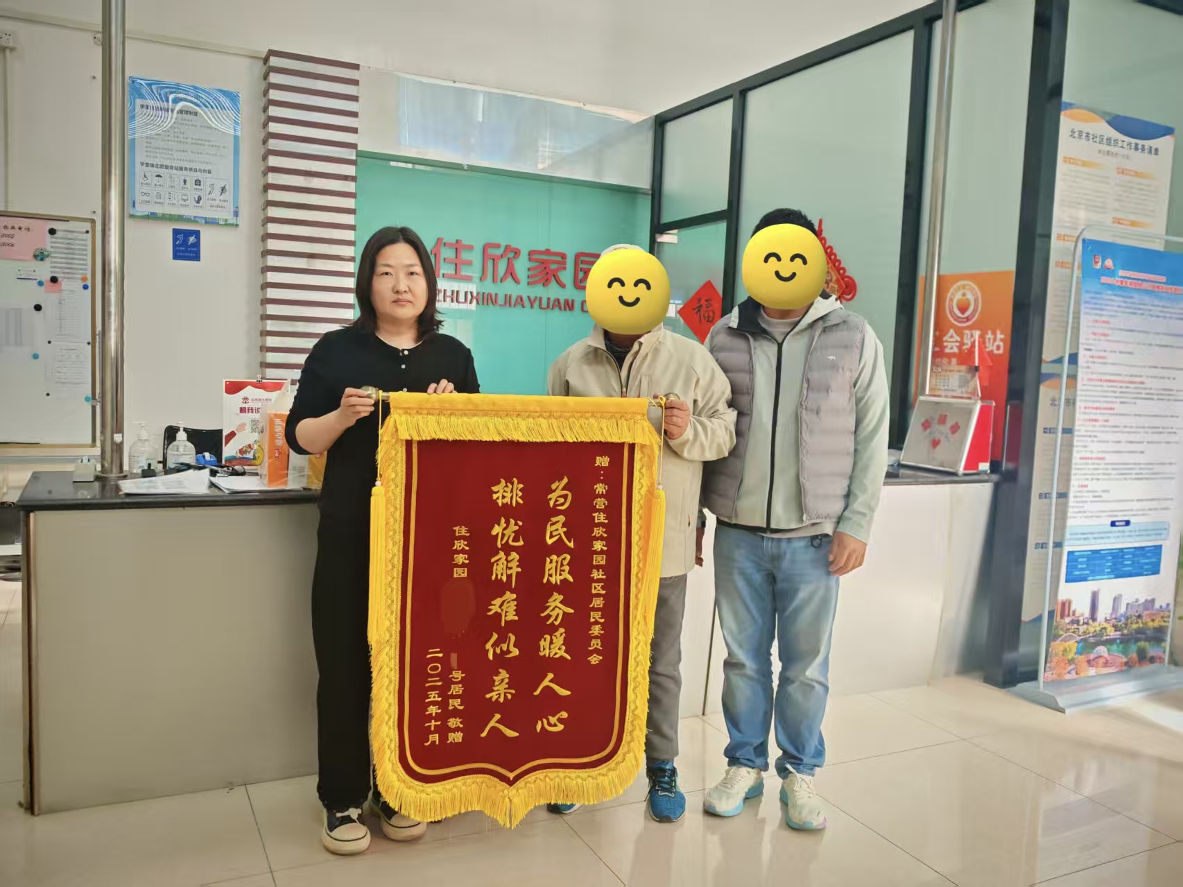 “谢谢你们及时上门,要不然真可能会出事。”近日,朝阳区常营住欣家园社区居民张先生将一面写有“为民服务暖人心,排忧解难似亲人”的锦旗专门送到社区工作人员手中。前几天,张先生和家人离京外出旅游,可家里手机充电器却忘记拔下,是社区工作人员及时上门,解了张先生的心头之忧。