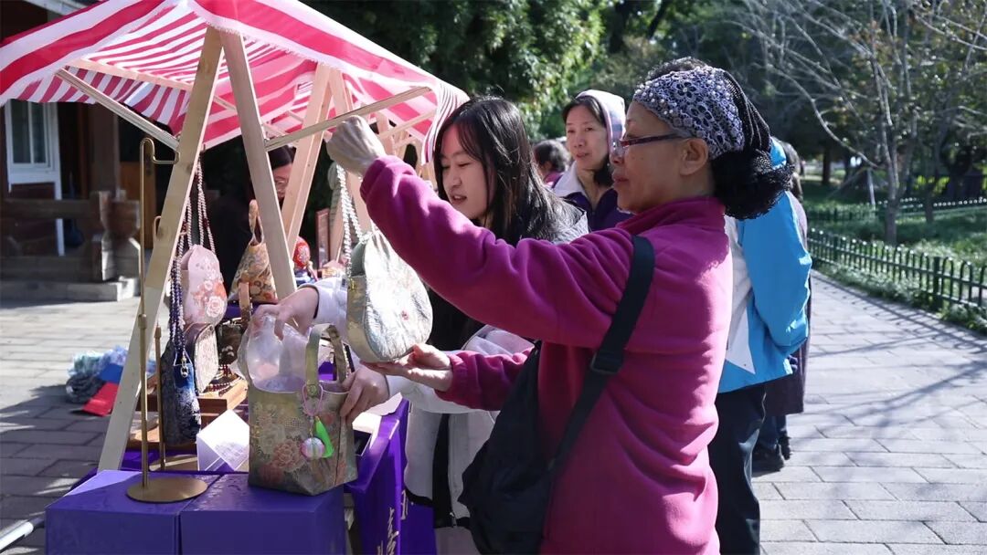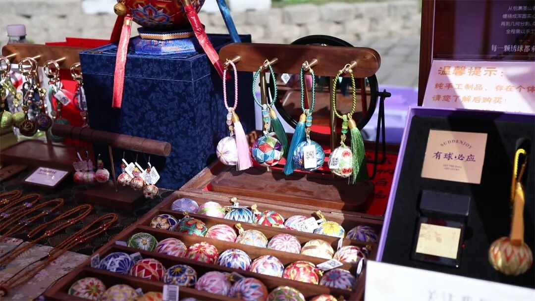 “本次市集我们带来的是非遗手工绣球、非遗大漆制品、手工织锦包等产品,其中唐氏非遗手工绣球由第四代传承人手工制作,工期约三天,内置寺庙香灰与檀香粉,为寓意祈福的缩小版‘抛绣球招婿’文化载体,可挂于包或车上,旨在宣传中国非遗文化,让大众更好地了解传统文化。” 北京市顿喜科技发展有限公司工作人员李俊菲介绍。