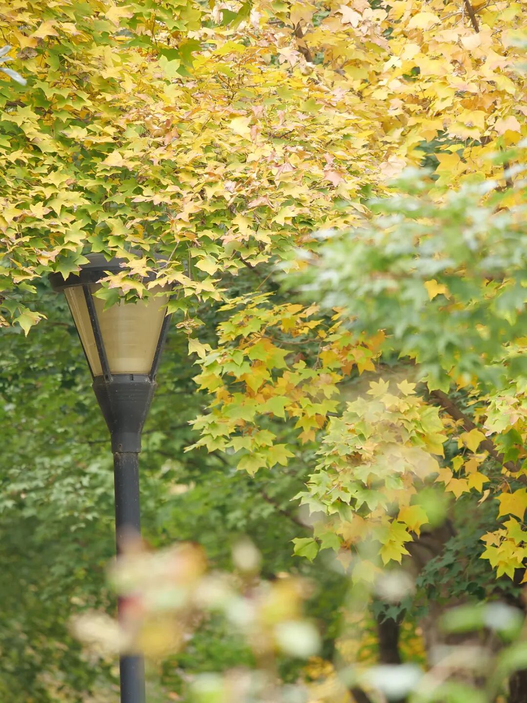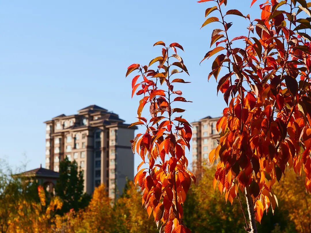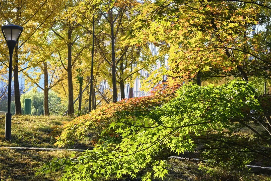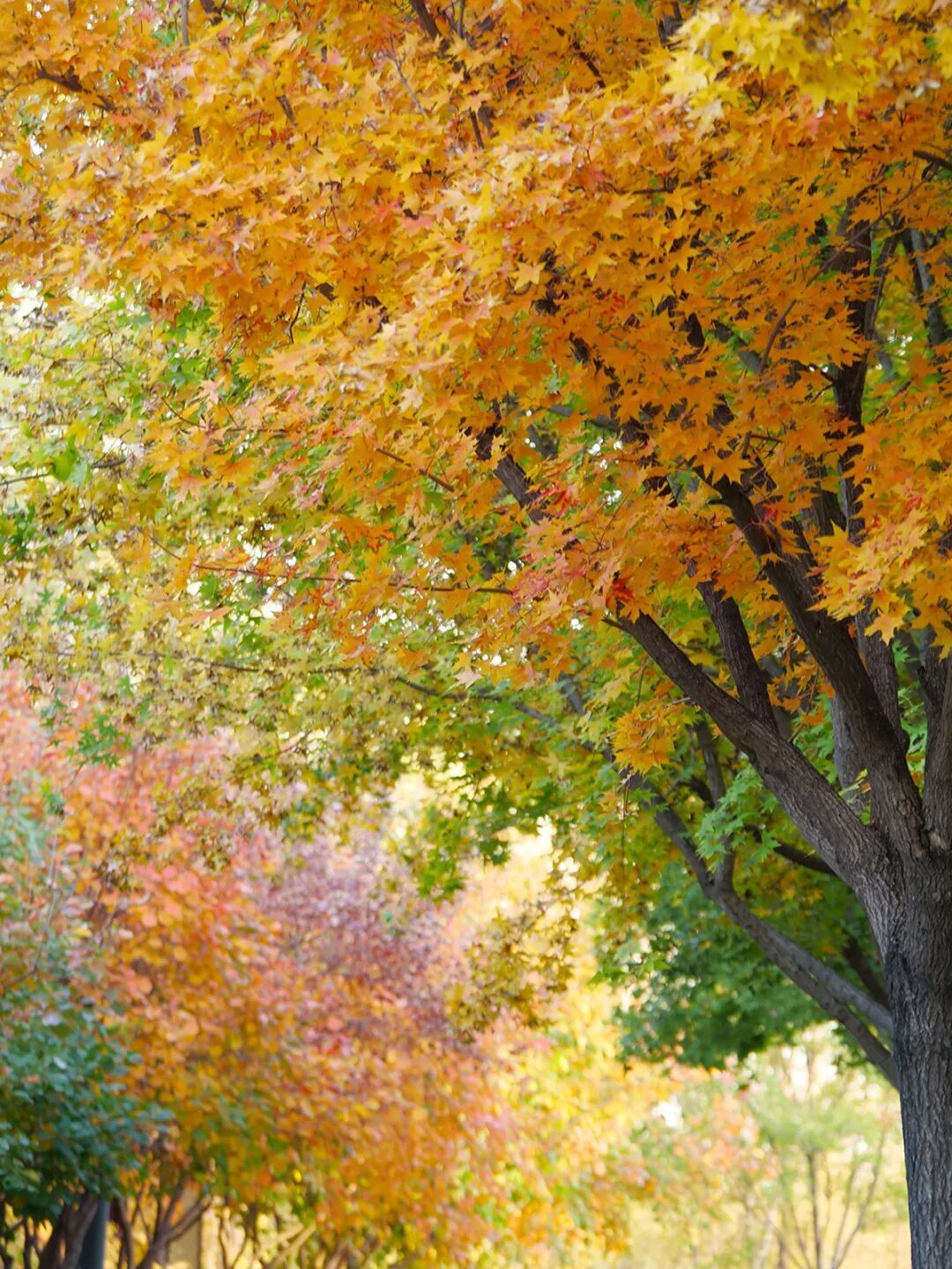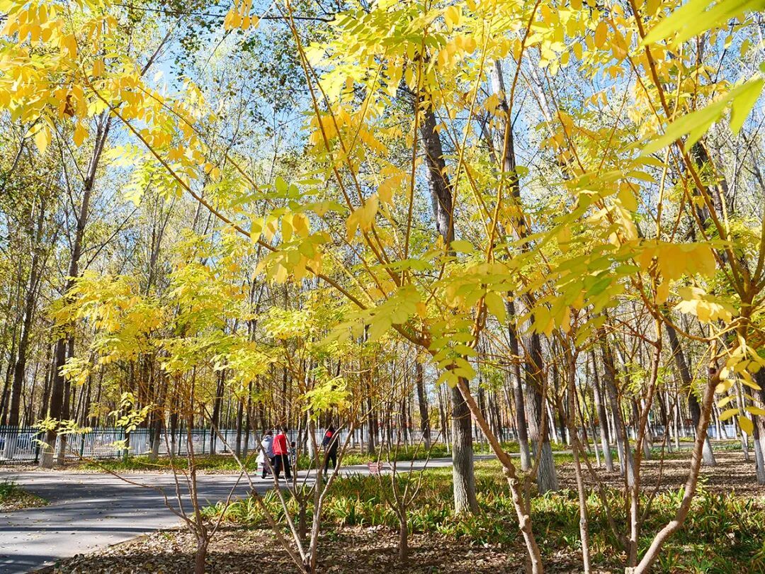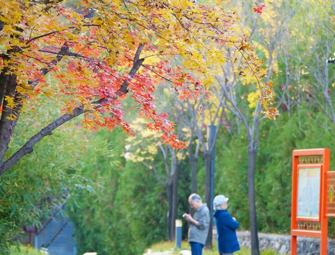 元宝枫、银杏、白蜡……这些树木在秋风中次第换装,橙红、金黄与深绿交织,宛如一幅浑然天成的油画。