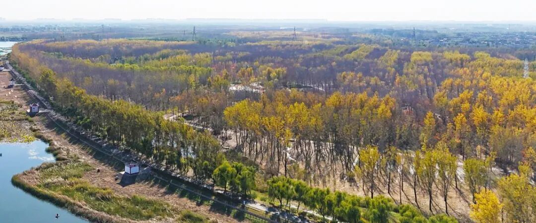 沿着潮白河畔漫步,顺义新城滨河森林公园展现出一幅水林相映的秋日长卷。