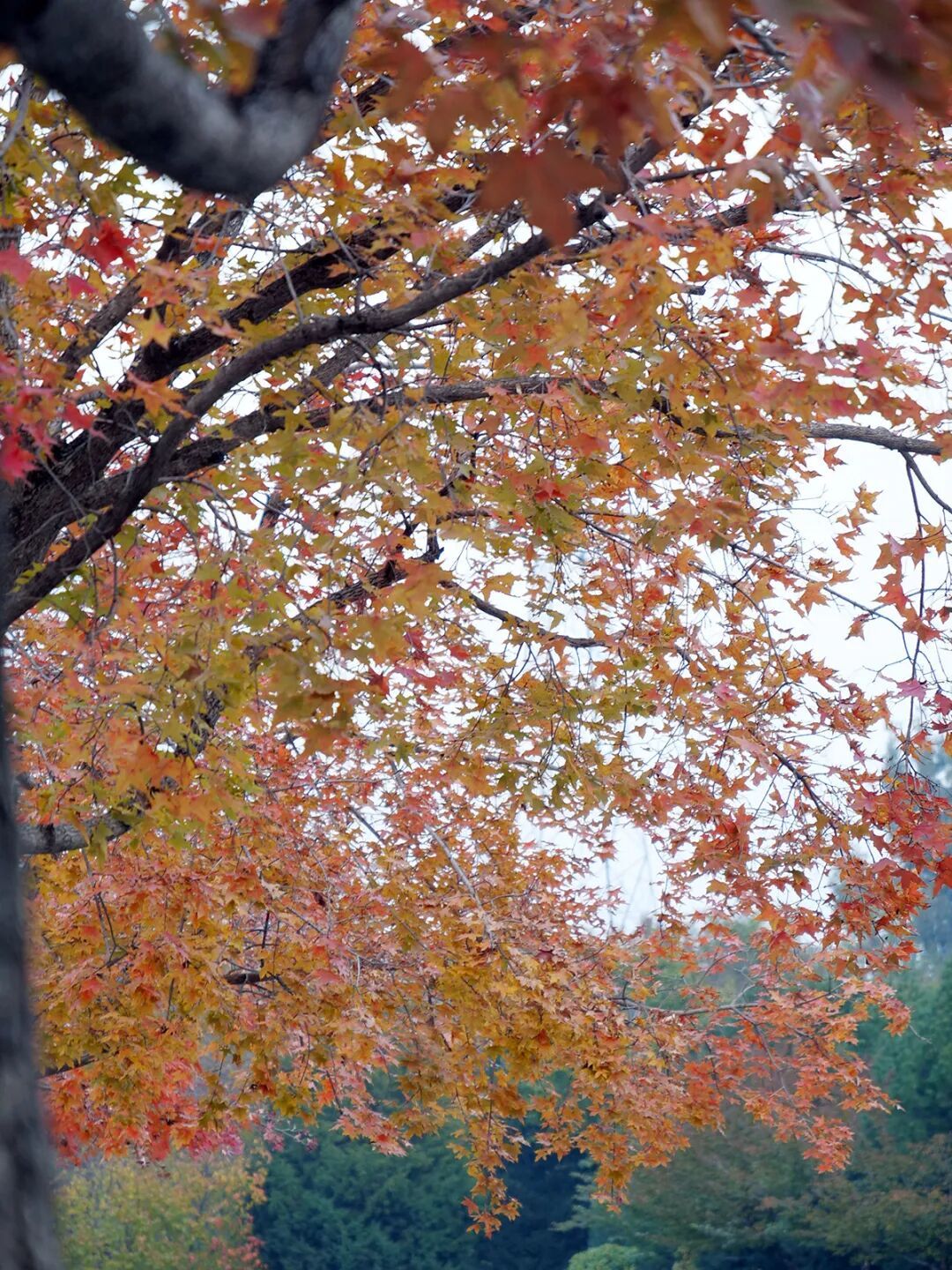 循石阶而上,两旁树木已染上深深浅浅的秋意。登临山顶极目远眺,斑斓秋色尽收眼底。