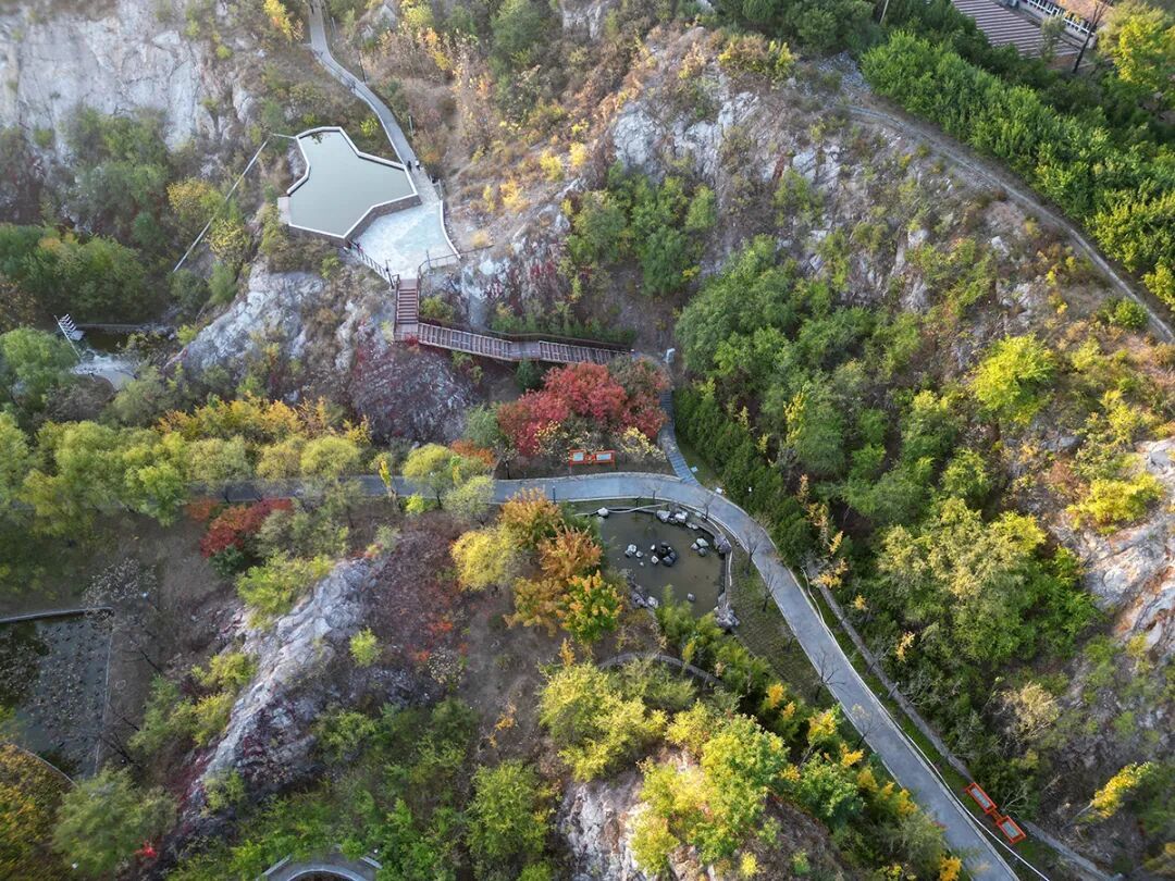 黄栌、火炬树等红叶树种炽烈如焰,与松柏的苍翠相互映衬,构成层次丰富的风景画。