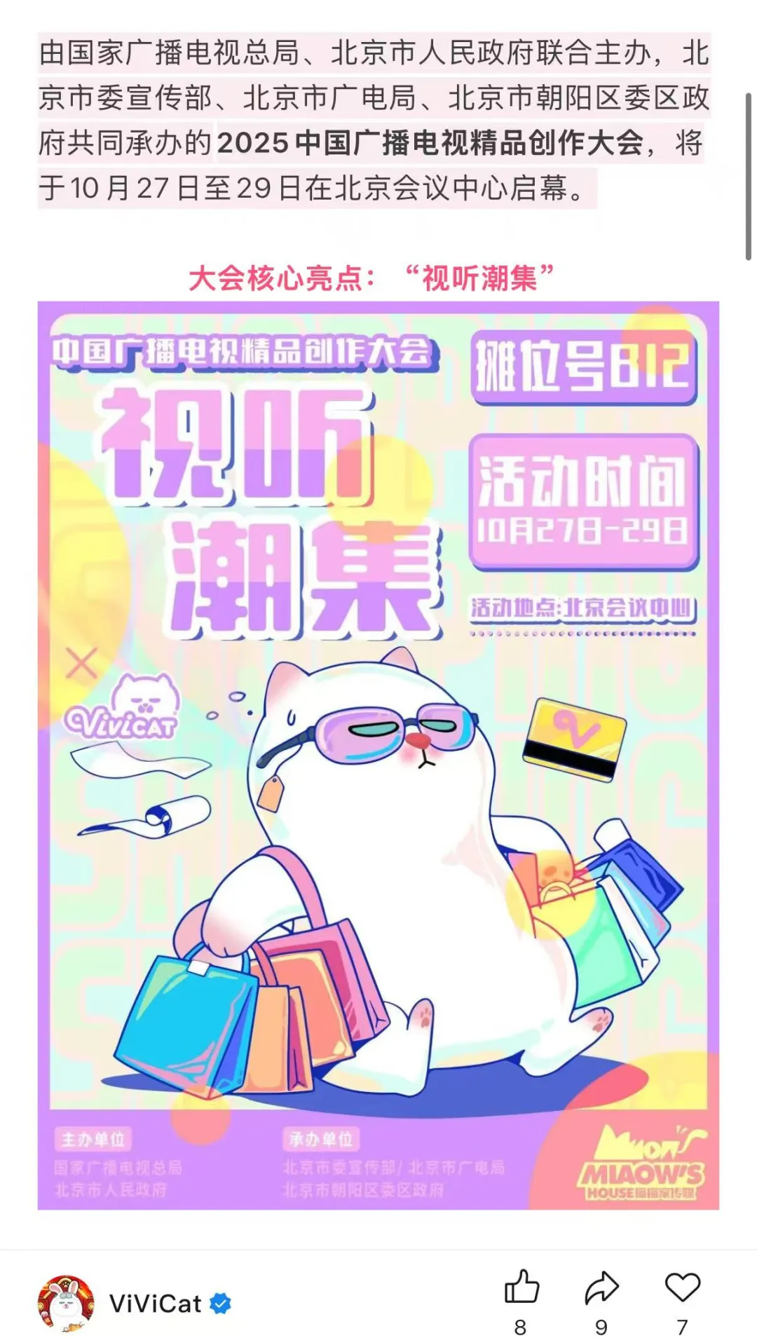 由国家广播电视总局、北京市人民政府联合主办,北京市委宣传部、北京市广电局、北京市朝阳区委区政府共同承办的2025中国广播电视精品创作大会,将于10月28日至29日在北京会议中心启幕。