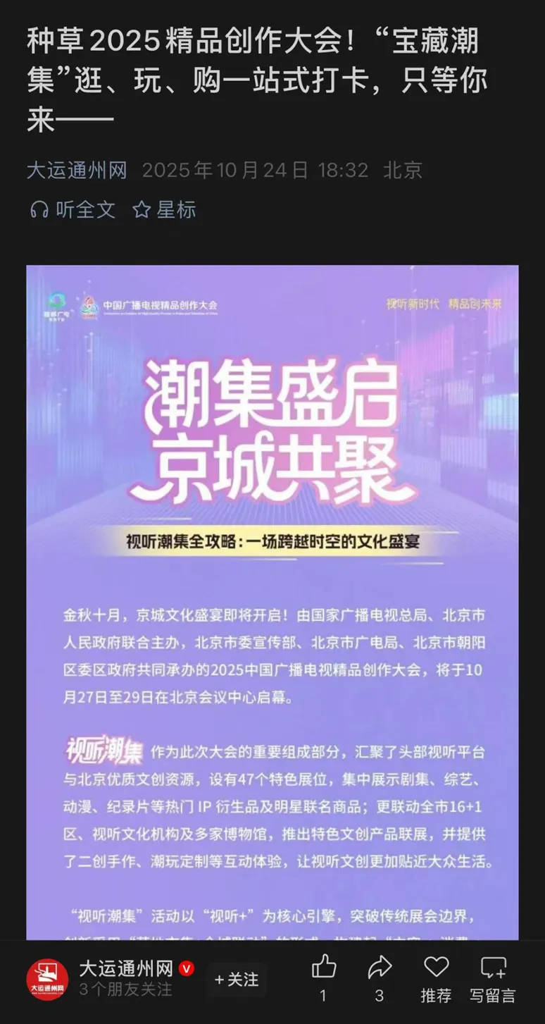 今天,我们将镜头拉近,继续聚焦于【视听潮集】一个个不容错过的具体打卡点。从萌趣互动到非遗体验,从书香文创到公益助农,这份“保姆级”攻略,带你提前锁定目标!