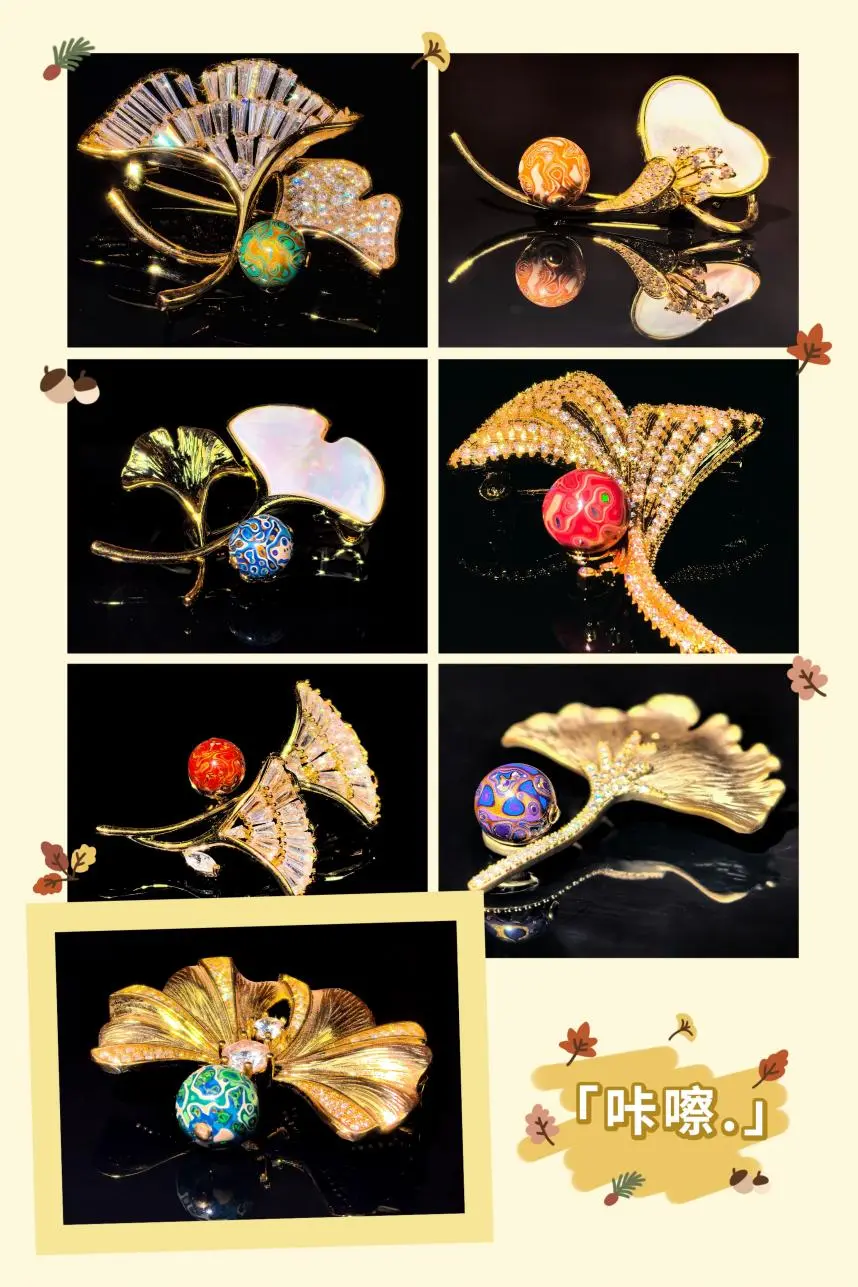 『虎皮漆珠胸针—金秋银杏款』