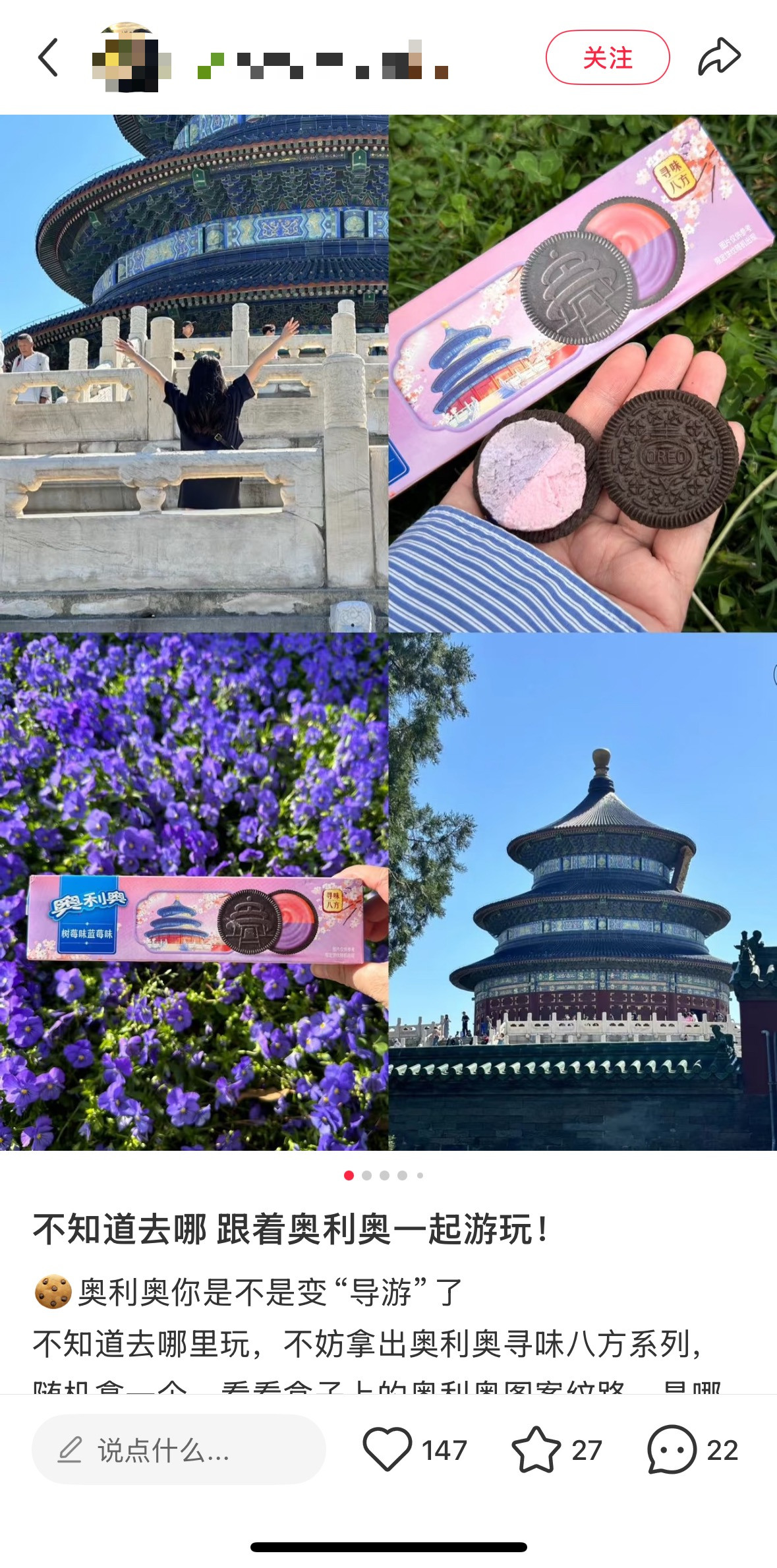 今年来,奥利奥上新的两款产品“红颜丹香”、“状元芝香”,分别以牡丹酥、状元酥为灵感进行设计。除了将产品中融入芝麻奶酥的口味,保留真实芝麻颗粒的口感外,奥利奥新品还在外观上,印有中国传统纹样,在包装上采用翻盖式古风包装。由此引发出消费者开启文旅打卡:“包装上印的五层塔楼在哪里?”“原来苏州有这么多花窗”……