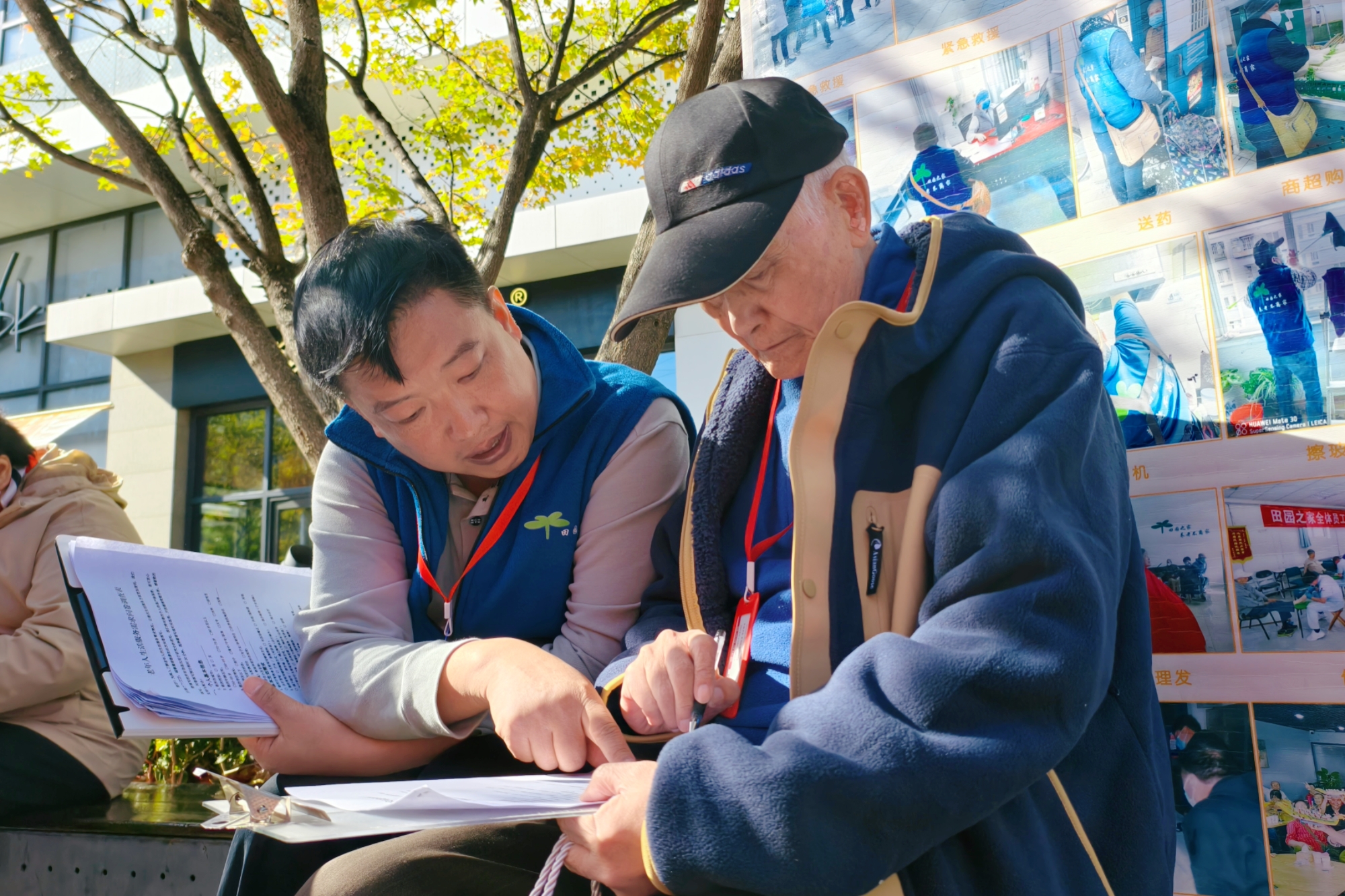 针对老人最关心的健康问题,现场开设健康咨询专区:医护人员不仅为老人免费体检,还结合季节特点开展养生讲座,从饮食调理、秋冬保暖到慢性病管理,把科学养老知识转化为“听得懂、用得上”的生活指南;面对居家养老的现实需求,适老企业工作人员逐一解答助餐配送、上门护理等疑问,甚至根据老人家庭情况推荐个性化服务方案,让“定制化”服务成为可能。