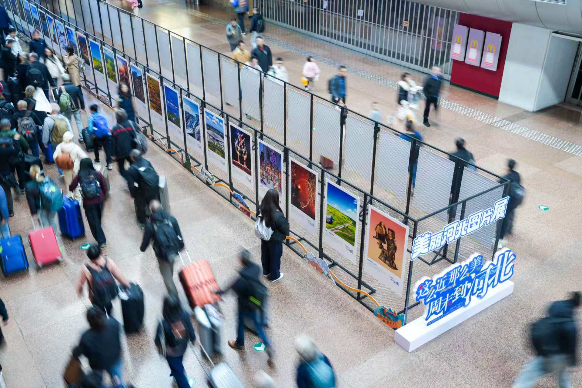 在图片展前,一幅幅展现坝上草原、巍峨长城、古朴小镇的震撼影像让众多旅客放慢脚步,提前进行了一场“云端”漫游。白石山的云海秋色,易水湖的潋滟波光,定州博物馆的珍贵馆藏,北戴河艺术村的创意活力……大家不时用手机拍照,作为将来旅游打卡的线索。
