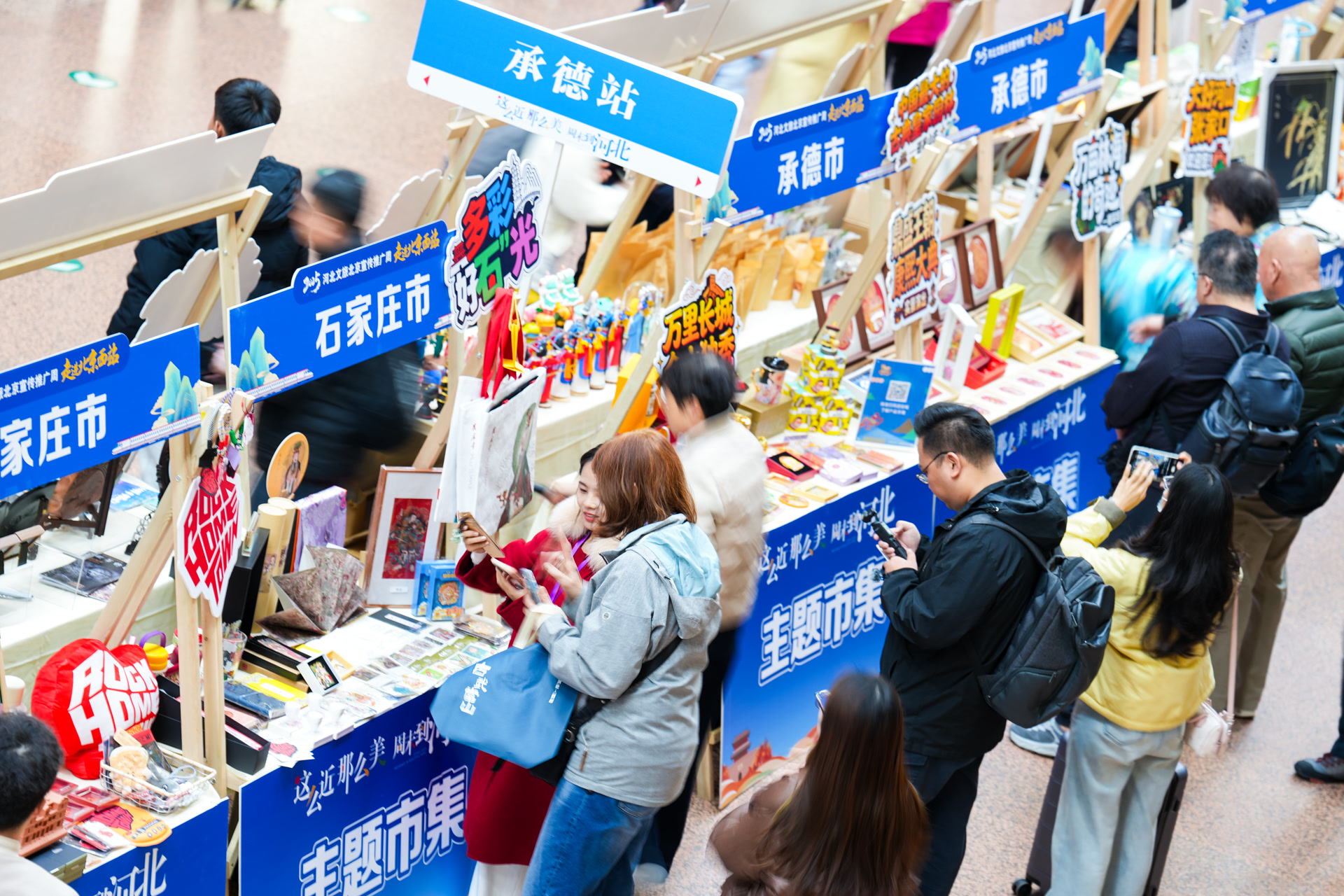 “无论是追求效率的快旅还是偏爱深度的漫游,河北都近在咫尺。”上午10点半,推荐官们正向南来北往的旅客推荐河北的文旅景区。集市上,邯郸面塑、保定甜面酱、丰宁满族剪纸等非遗产品让人目不暇接,衡水内画、唐山陶瓷杯则成为备受青睐的旅行纪念品。