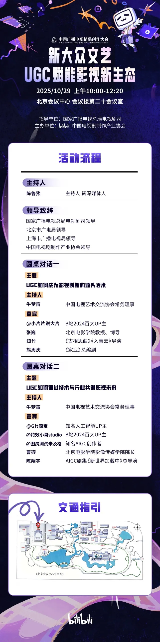 10月29日,由国家广播电视总局电视剧司指导,哔哩哔哩和中国电视剧制作产业协会主办的“新大众文艺:UGC赋能影视新生态”沙龙,将在北京会议中心会议楼第二十会议室正式举办。本次沙龙聚焦影视行业创作范式变革,依托B站作为国内最大的UGC(用户生成内容)视频社区的平台优势,汇聚众多影视行业权威人士与UGC创作者,旨在搭建一个高效对话平台,探索将UGC创造力转化为行业可持续生产力的路径。