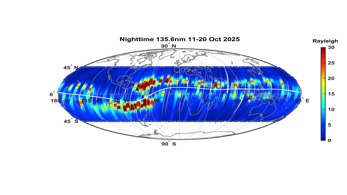 在空间天气监测方面,H星搭载全球导航卫星掩星探测仪、电离层光度计和广角极光成像仪三台空间天气载荷。H星掩星数据可重构全球三维电子密度场,清晰呈现300至400公里高度的电子密度峰值区与赤道异常双峰结构。电离层光度计可监测到磁暴期间氧氮浓度比的显著变化,为空间天气预警提供重要依据。