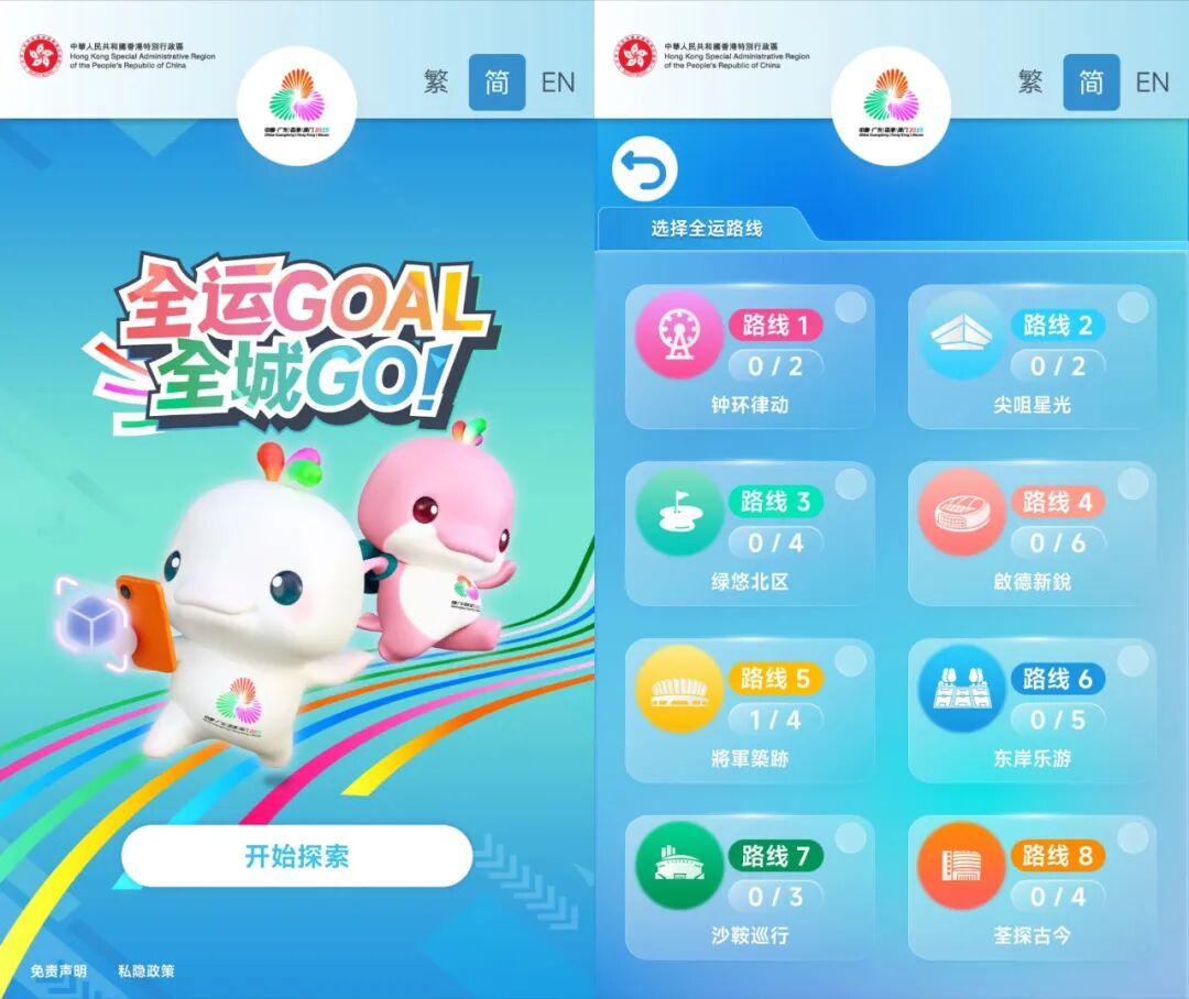香港赛区特别推出“全运GOAL全城GO”AR体验活动,透过先进的扩增实境技术,结合文化、体育与旅游元素,设计了八条期间限定的“全运路线”,涵盖竞赛场地及周边特色地标,打造寓资讯于娱乐的沉浸式AR体验。