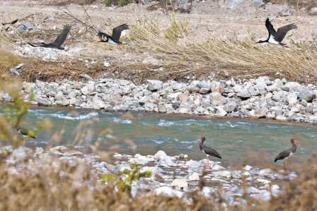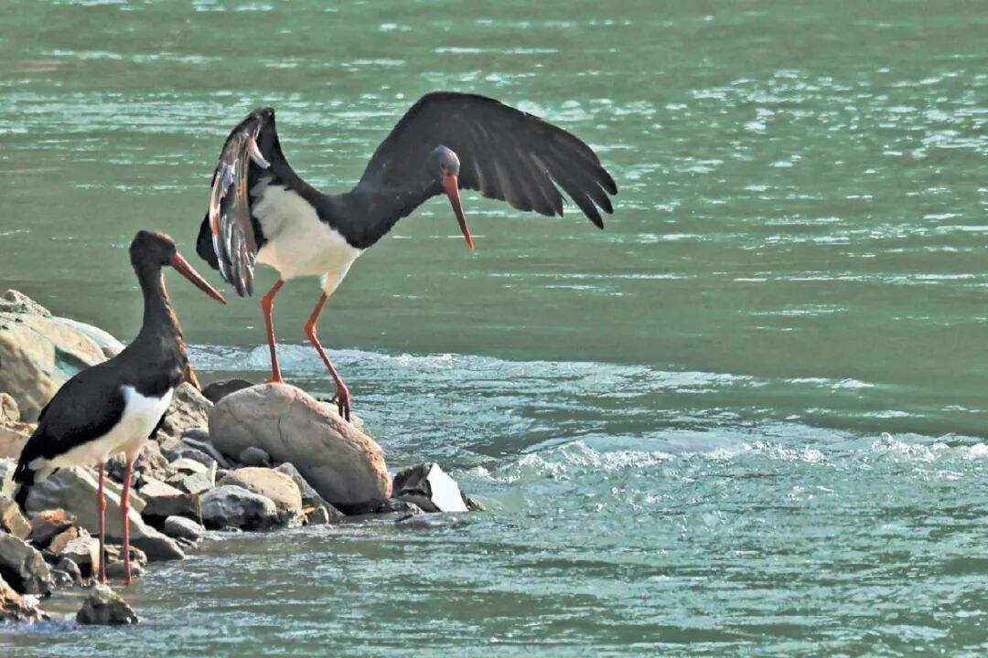 近年来,永定河生态补水成效显著。来自山西与内蒙古交界处的万家寨水库的黄河水、大同册田水库水、北京官厅水库水以及部分再生水等,共同汇入永定河。通过生态补水、生态修复与综合治理,永定河流域水生态持续改善成为黑鹳理想的栖息地。