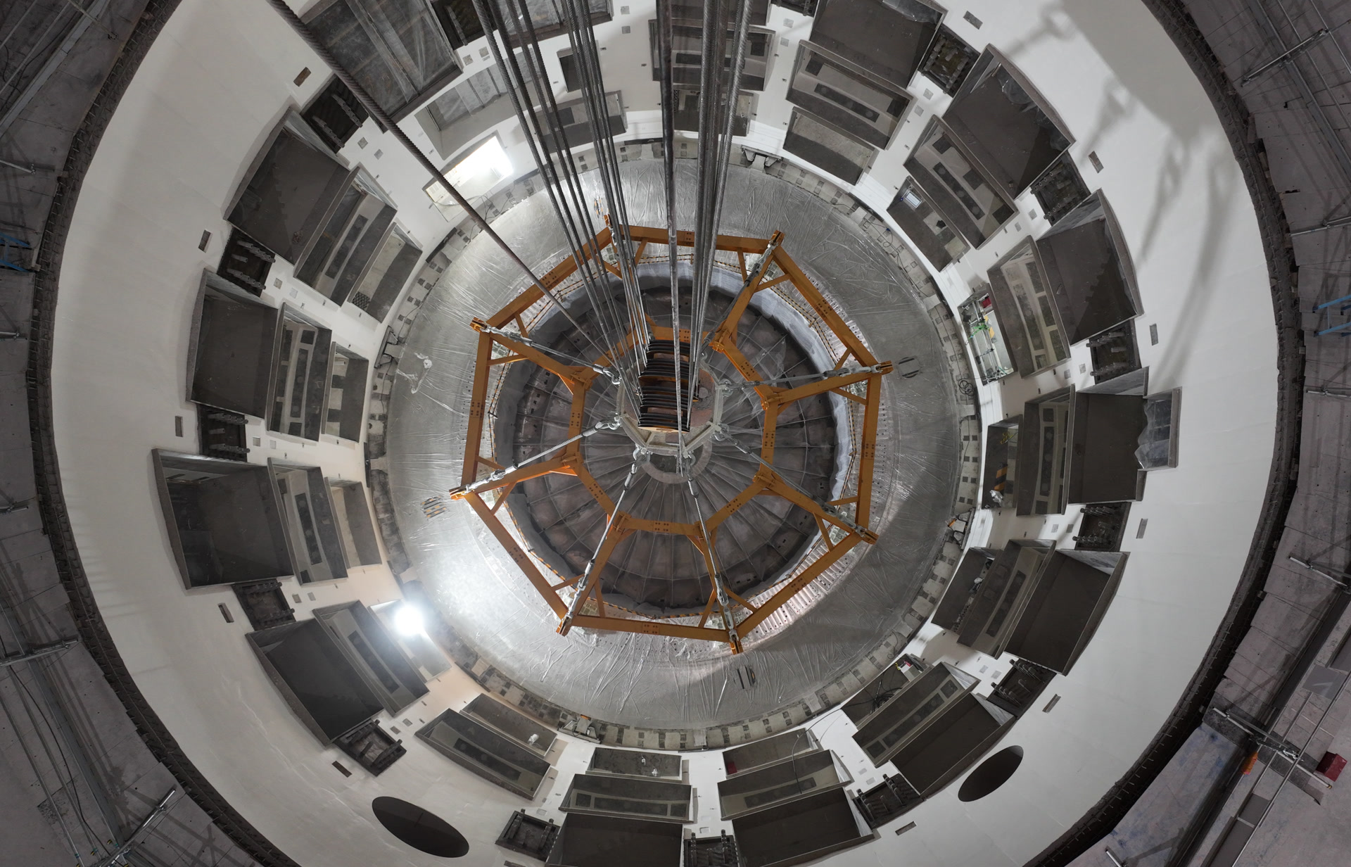 这次安装的杜瓦底座在整个紧凑型聚变能实验装置中发挥的作用是,提供绝热功能,把上亿摄氏度的高温等离子体及室温操作区与运行在-269℃环境中的超导线圈隔离开来。