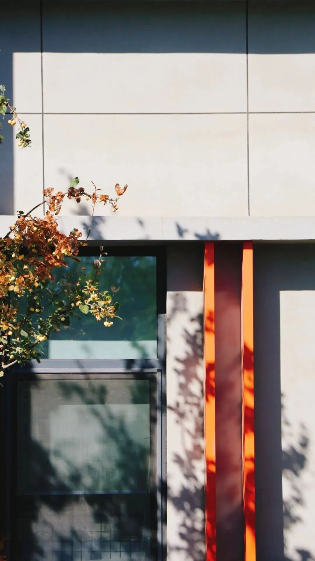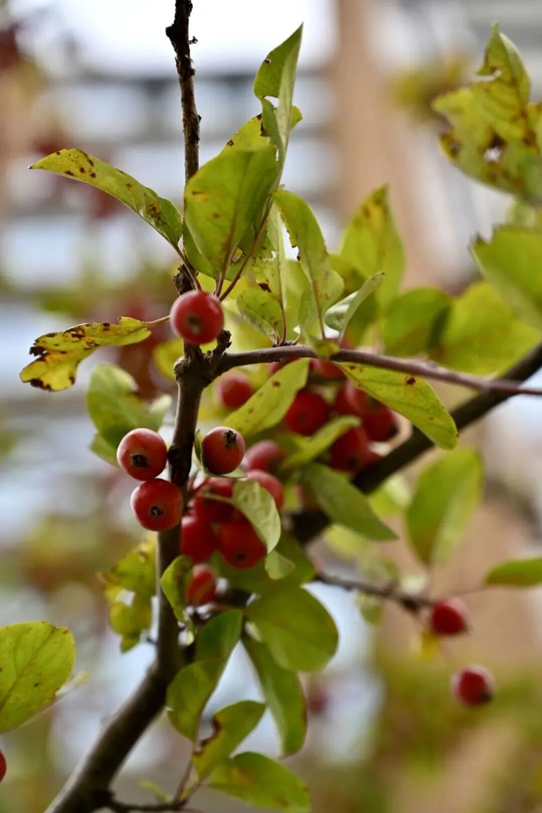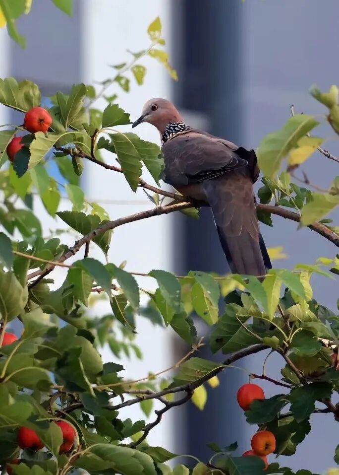 枝头红果与檐下柿子